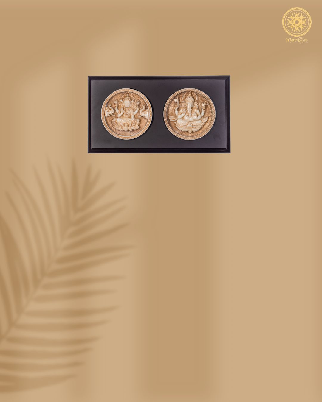 Buy Divine Ganesha & Lakshmi Wall Hanging Frame | Wooden & Resin Wall Decor Online.