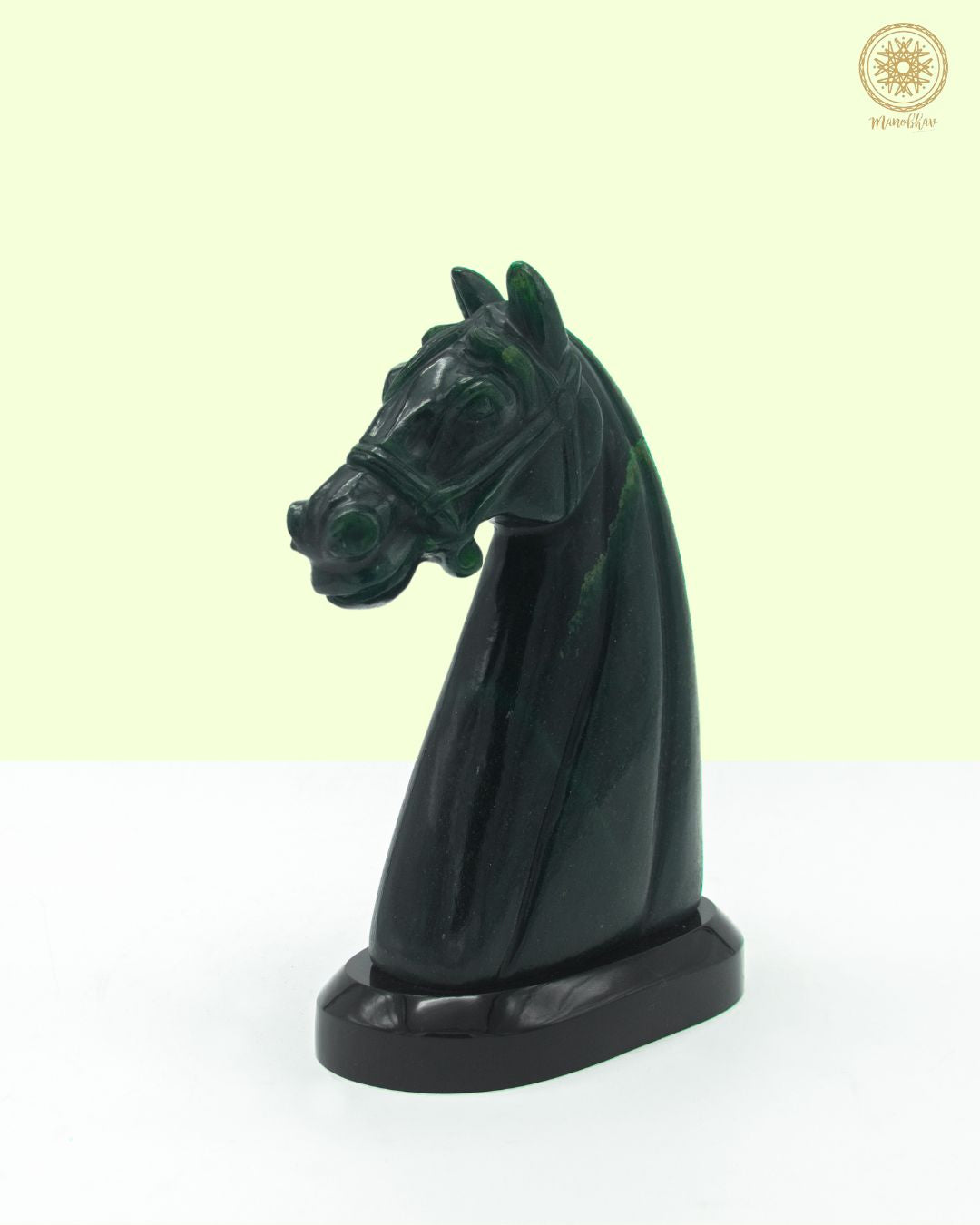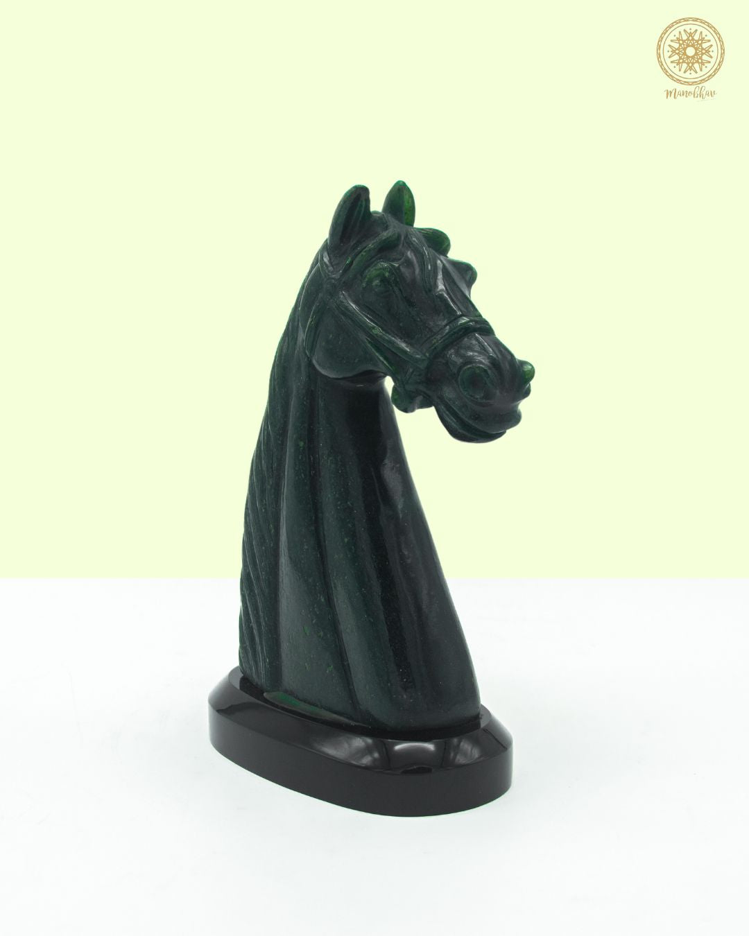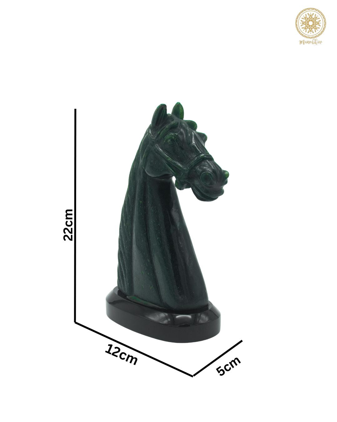 Einige BeschreibungenGrüner Aventurin ist ein Halbedelstein, dem heilende und Wohlstand bringende Eigenschaften nachgesagt werden. Er wurde für diese Pferdeskulptur ausgewählt, weil er Wachstum, Glück und Führungsqualitäten symbolisiert, die ein Pferd bereits verkörpert.