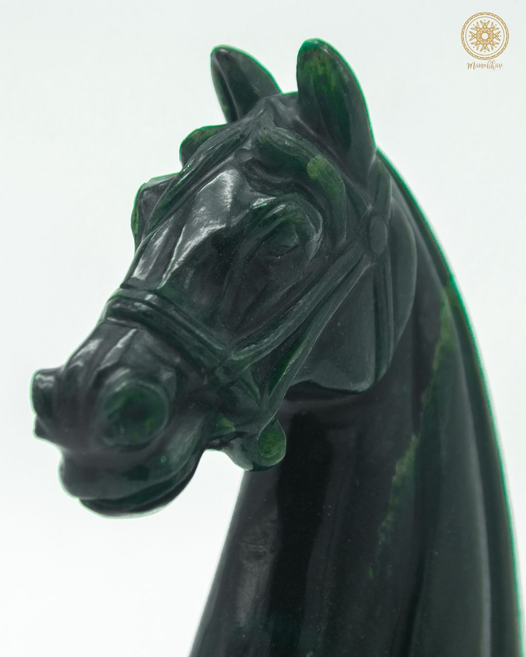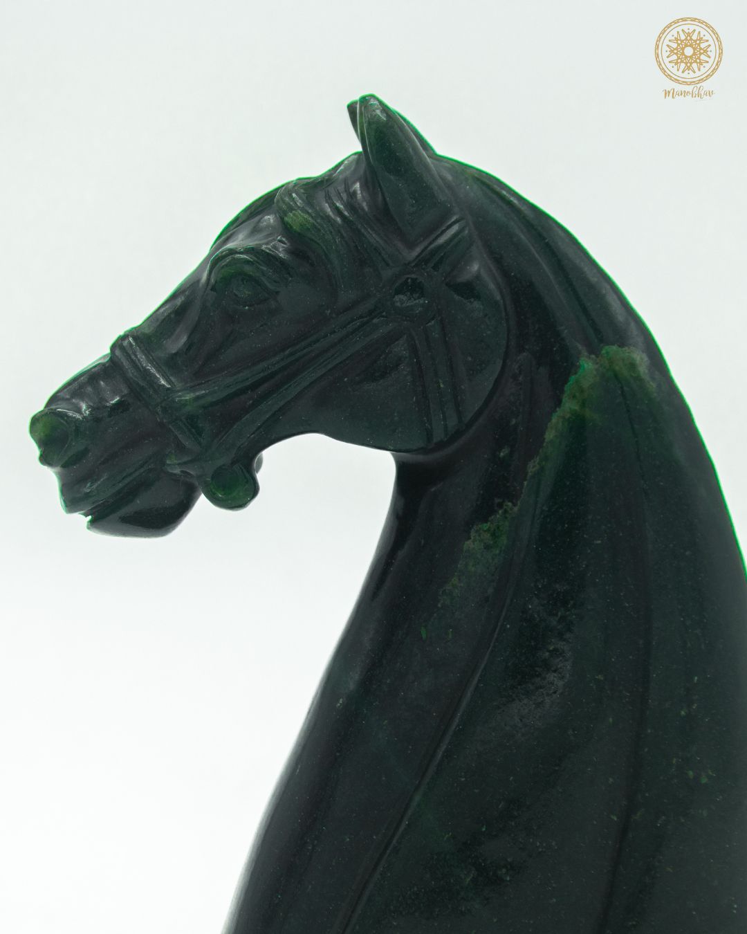 Handgeschnitzte Pferdestatue aus grünem Aventurin | Tierkunst-Skulptur