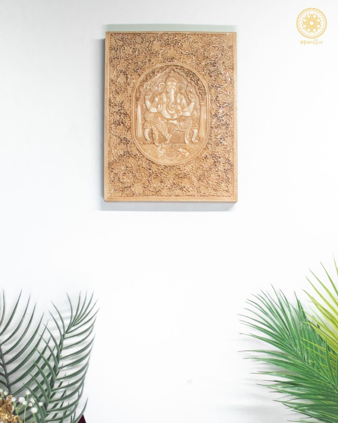 Kaufen Sie online handgeschnitzte Wanddekoration des Hindu-Gottes Ganesha, Wandkunst.