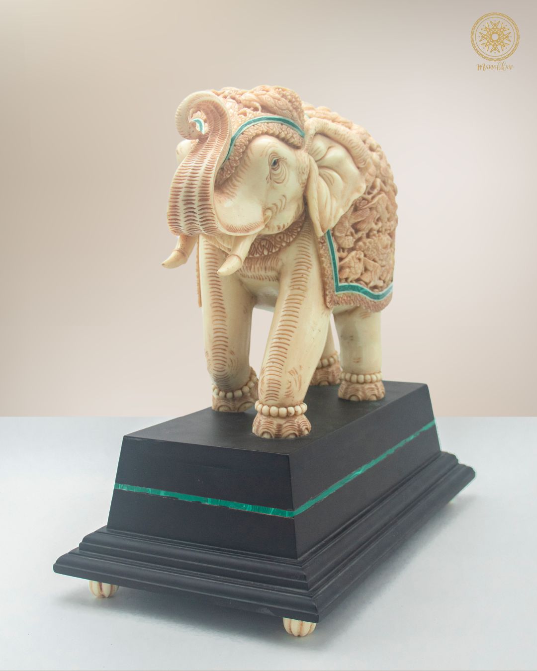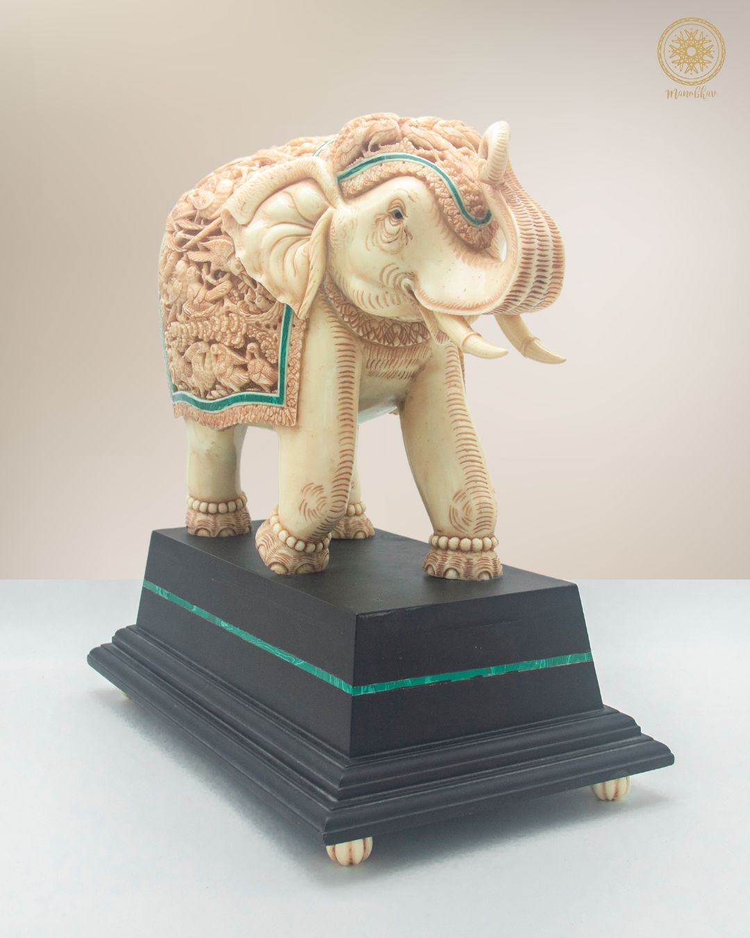Handgeschnitzte Elefantenskulptur aus Kunstharz mit Malachit | Prunkstück für die Inneneinrichtung