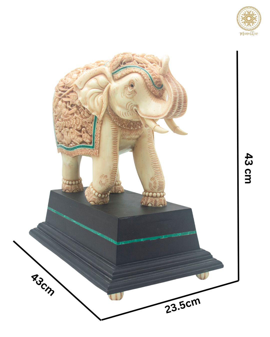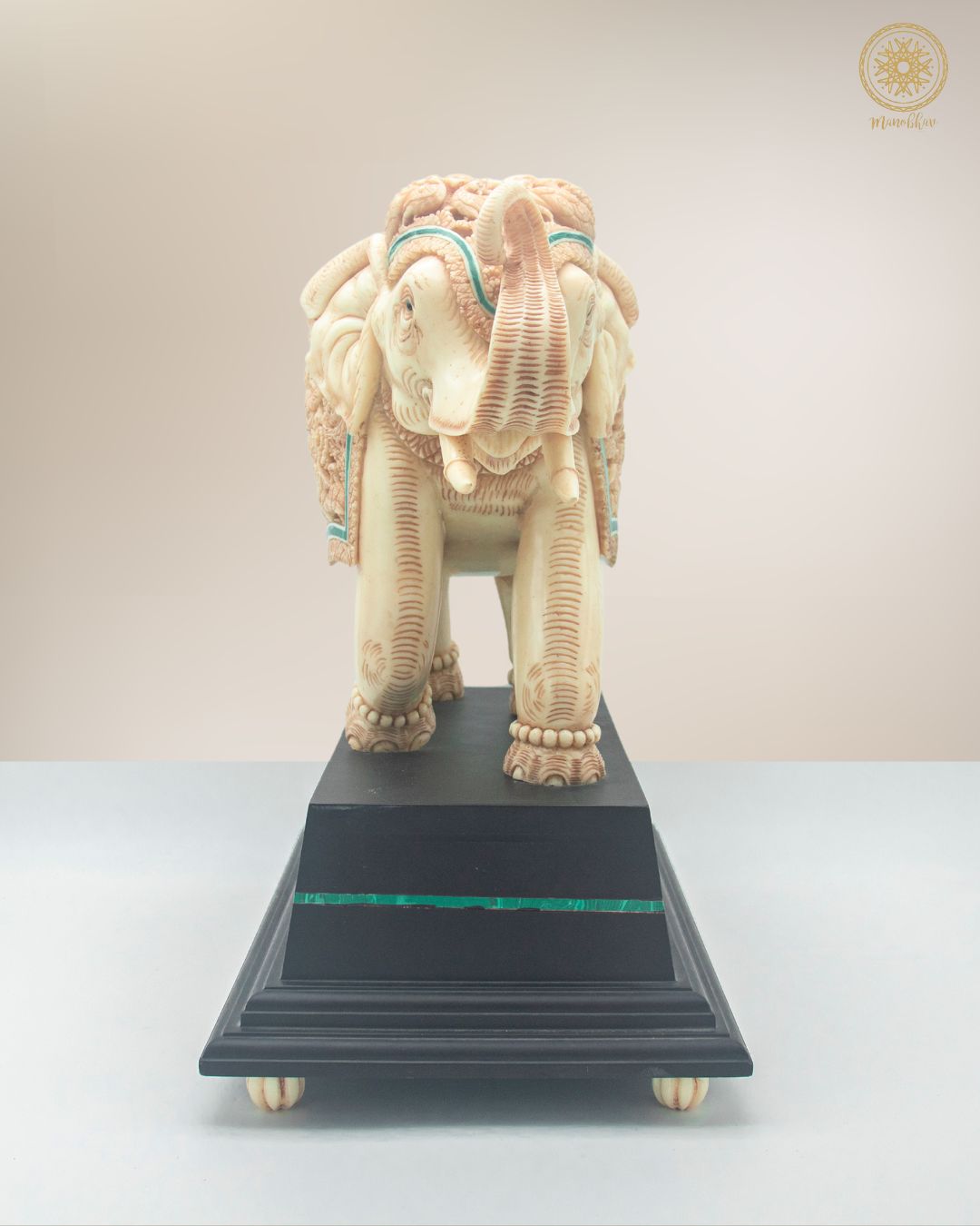 Unsere Elefantenstatue aus Kunstharz ist das ultimative Handwerk Indiens und wird mit größter Sorgfalt und Präzision von erfahrenen Handwerkern hergestellt. Jede handgeschnitzte Elefantenfigur zeigt Indiens reiches Erbe, da jedes Detail der Schnitzereien die Stärke und Finesse dieses wunderschönen Geschöpfs andeutet. Diese indische Elefantenskulptur ist ideal für Sammler und Kenner, die eine besondere Bindung zu handgefertigten Dekorationsstücken haben.