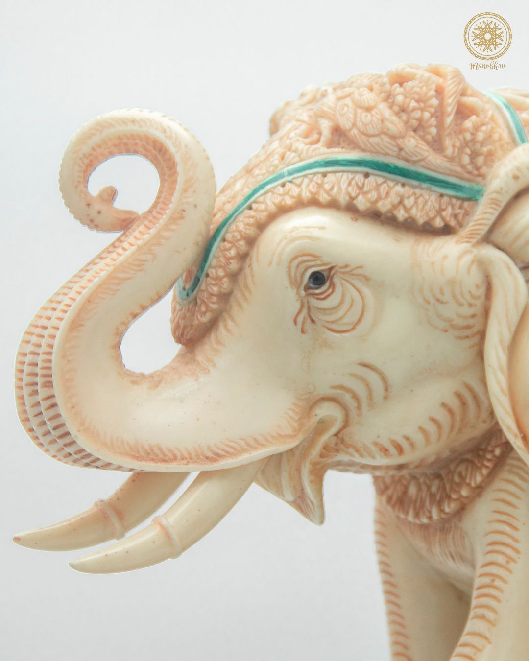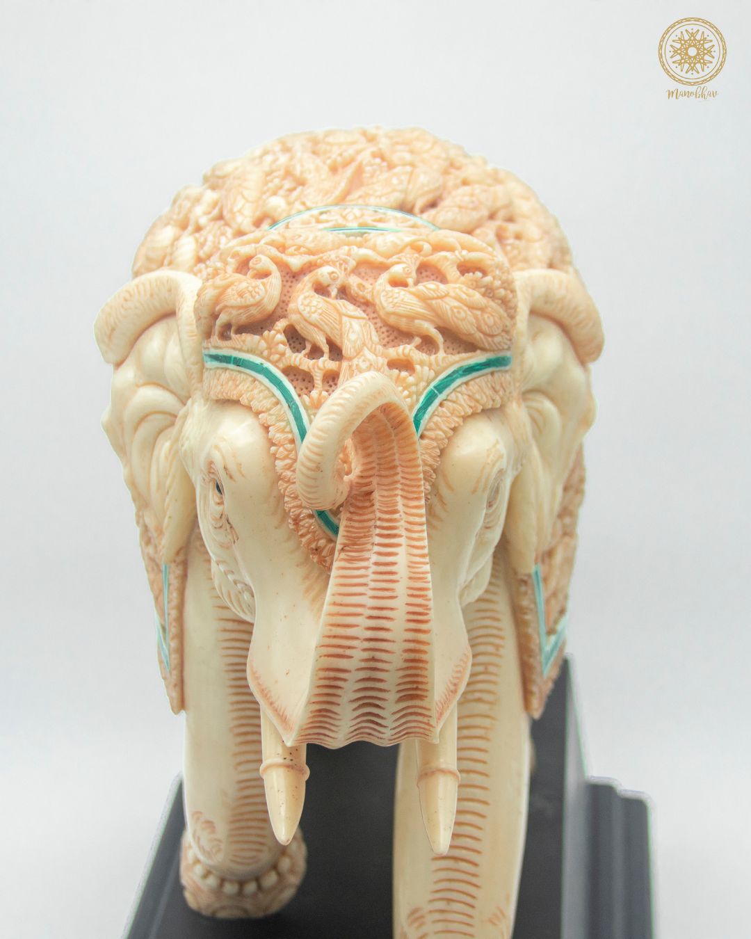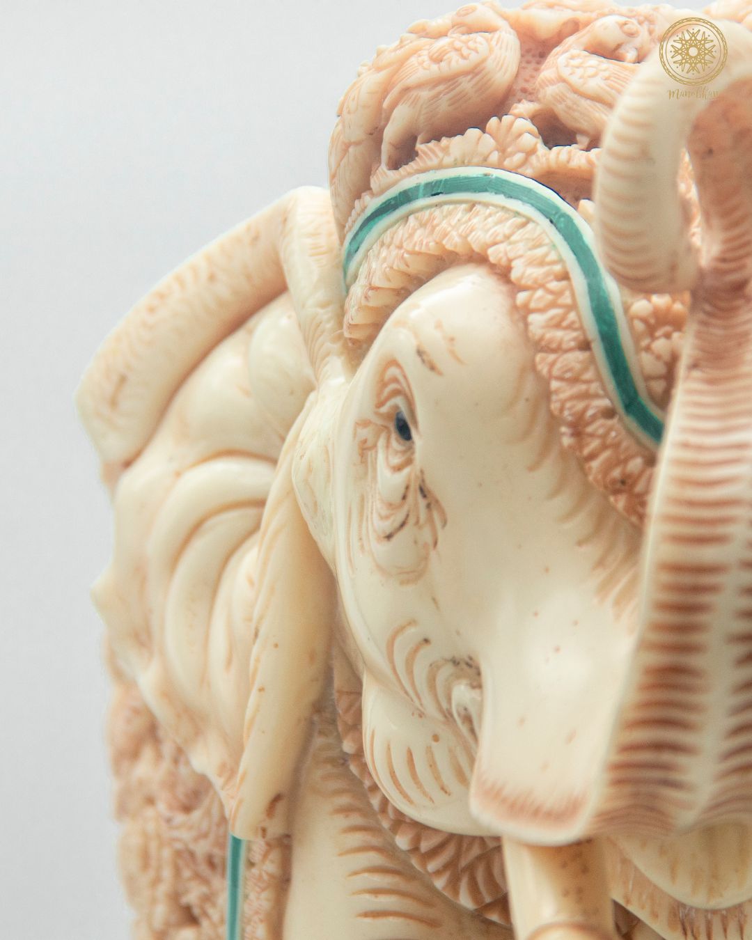 Unsere Elefantenstatue aus Kunstharz stellt eine einzigartige Kombination aus traditioneller indischer Handwerkskunst und modernem Design dar. Jedes Stück wird von erfahrenen Kunsthandwerkern handgeschnitzt, was jede Figur zu einem einzigartigen Kunstwerk macht.