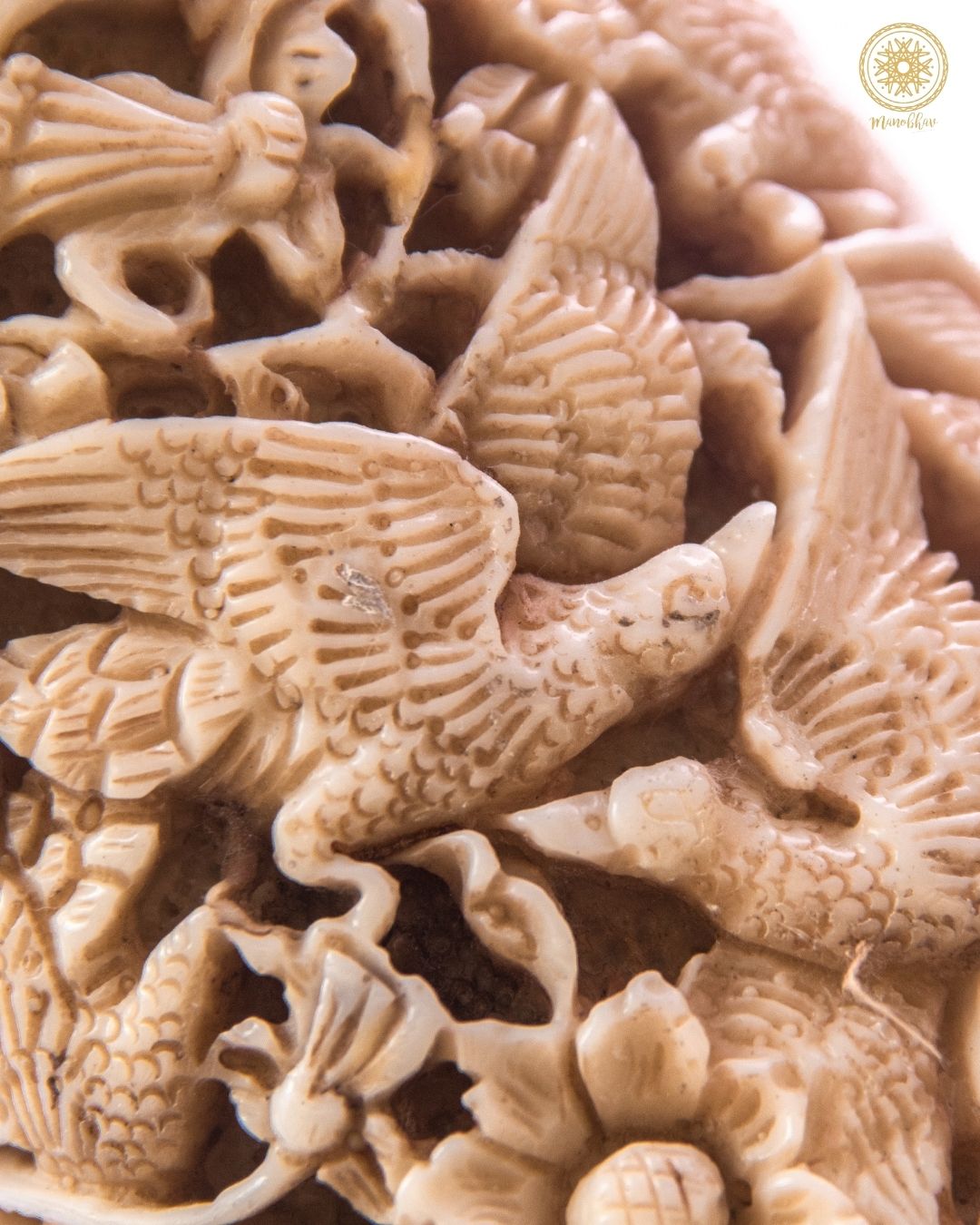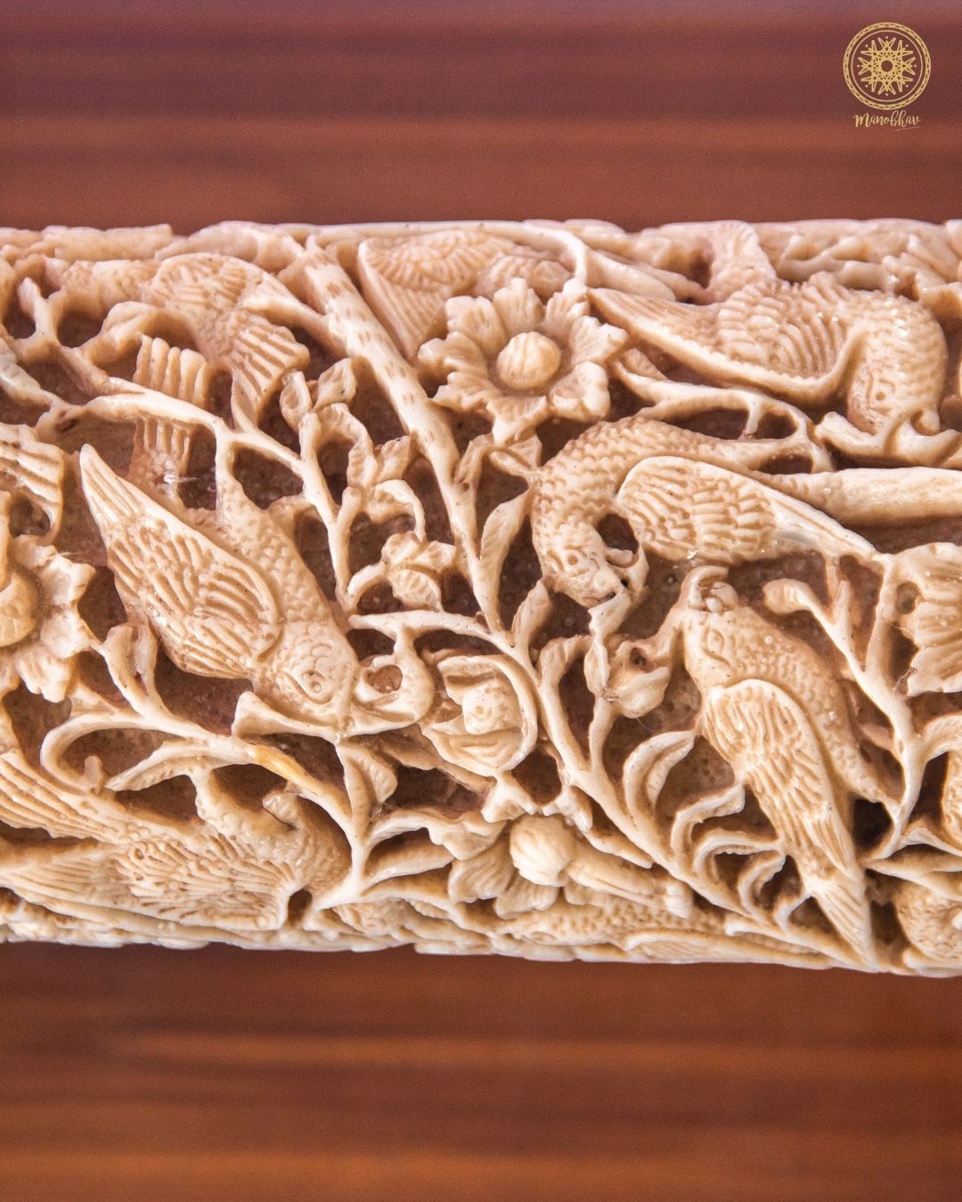 - In diesem Fall imitiert der Stoßzahn aus Harz die Eleganz von Elfenbein, ohne den Elefanten zu schaden.