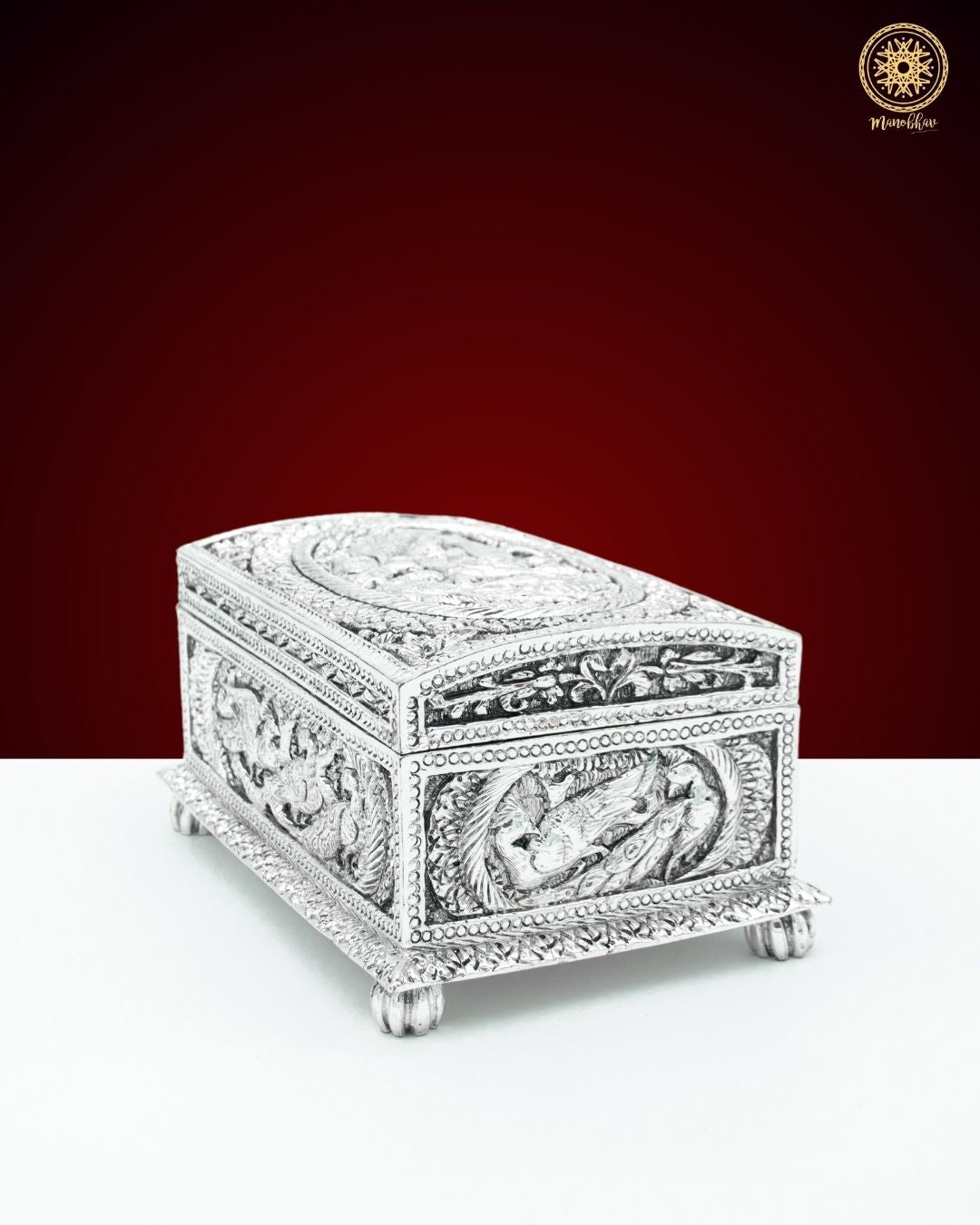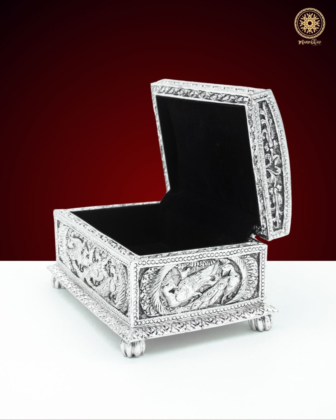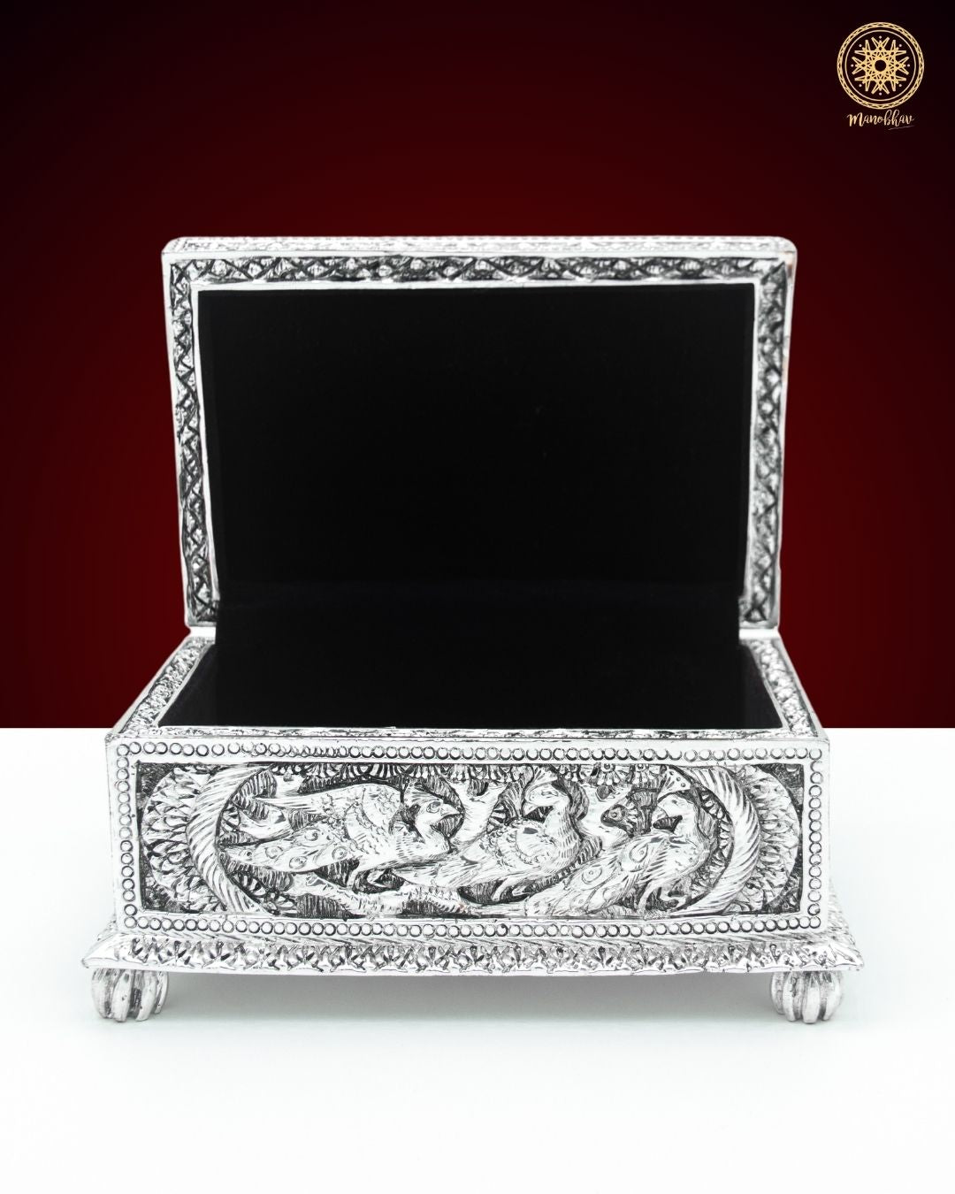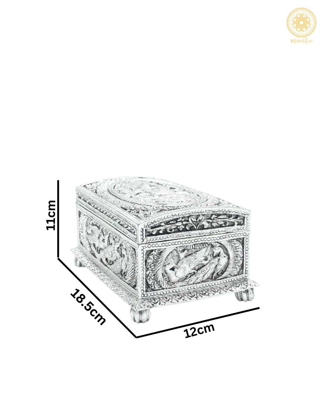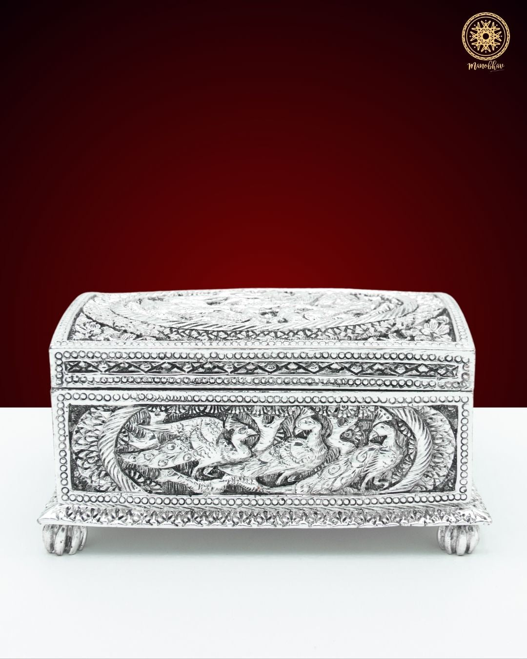 Unsere erfahrenen Handwerker haben jedes Stück gründlich studiert und es mit komplexen 3D-Pfauenmustern gestaltet. Diese versilberte Box ist von Hand und mit viel Liebe zum Detail gefertigt und somit ein Zeichen für die geschickte Arbeit der Handwerker, das nie an Wert verliert.