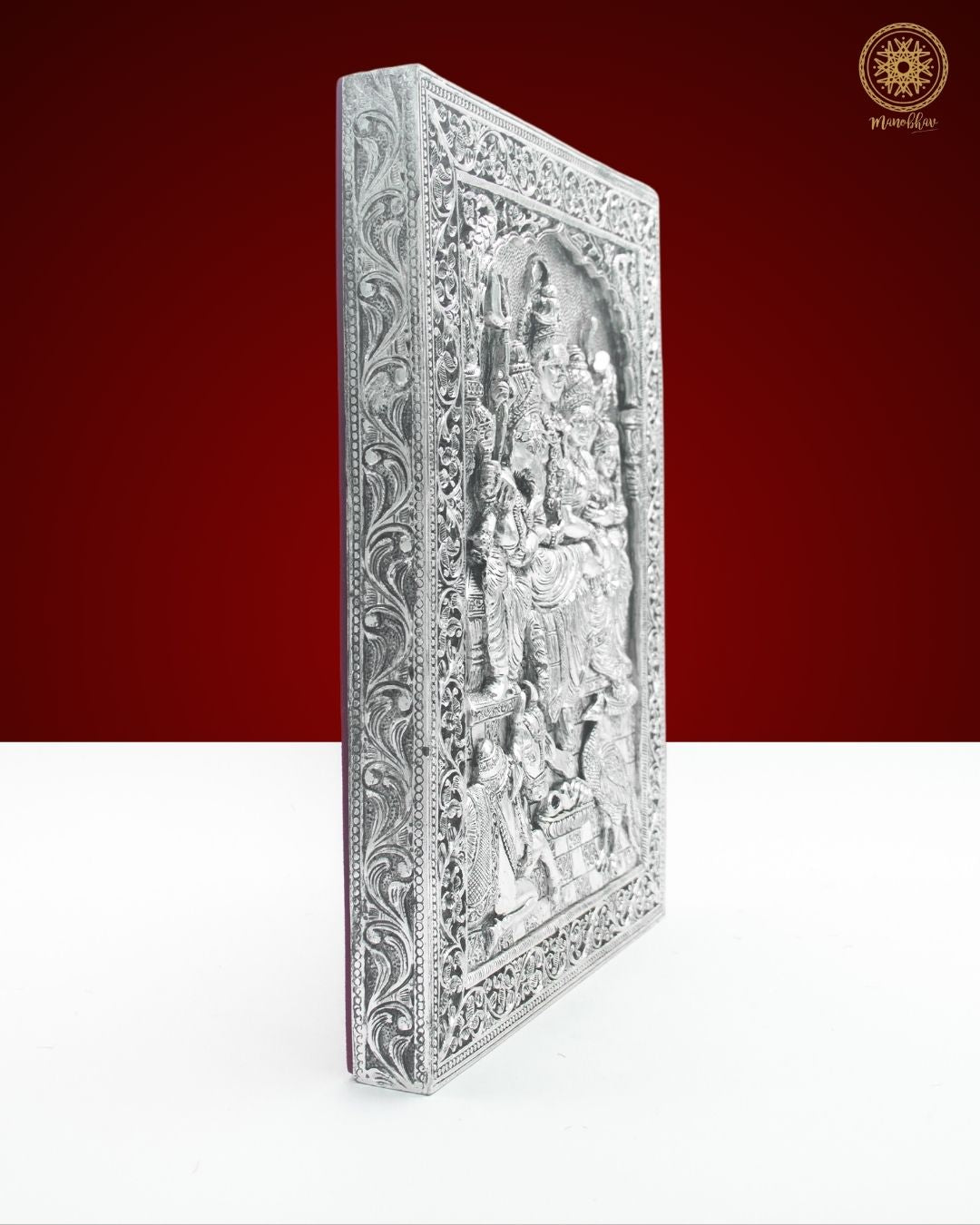 Handgeschnitzter, versilberter Shiv Parivar-Wandrahmen für Zuhause und Büro