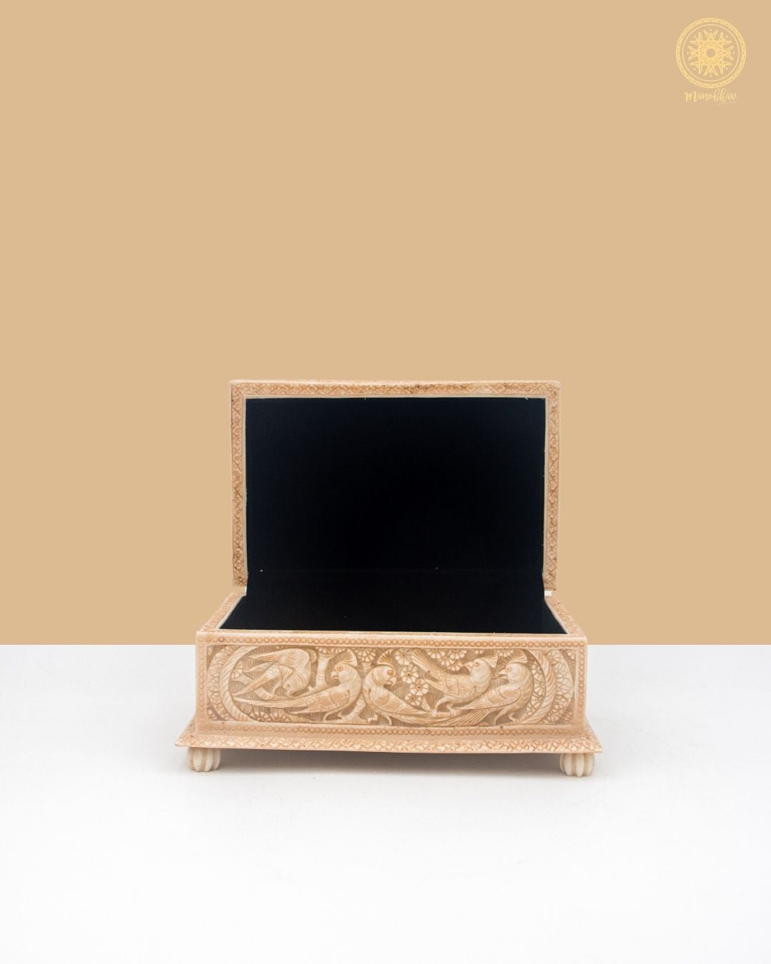 Hand-Carved Jewelry Organizer Box | Decorative Jewelry Storage Trinket Box