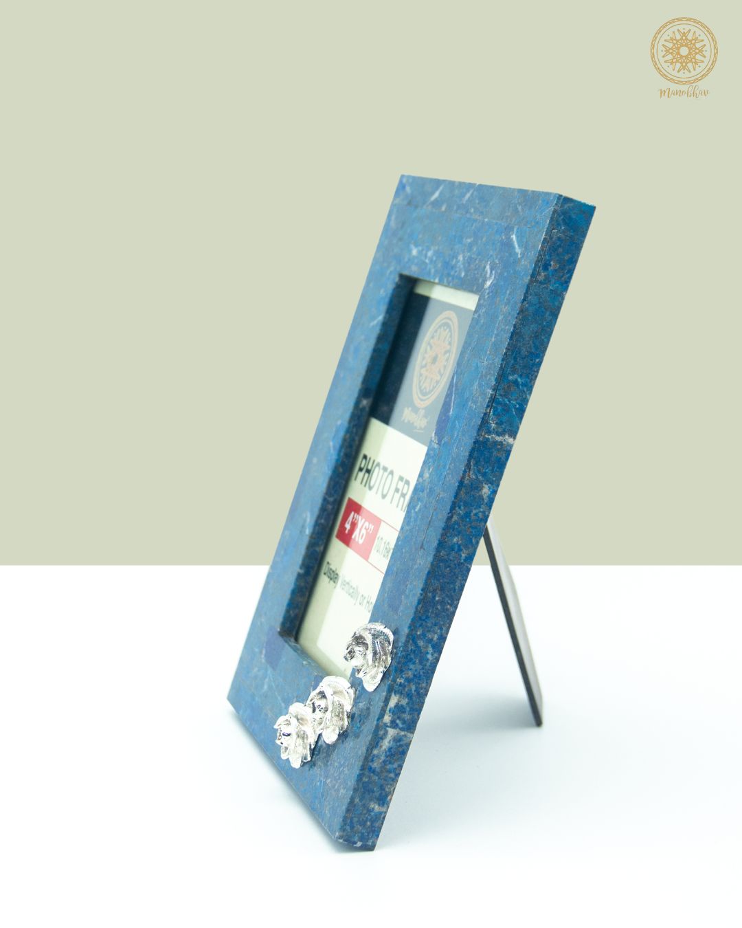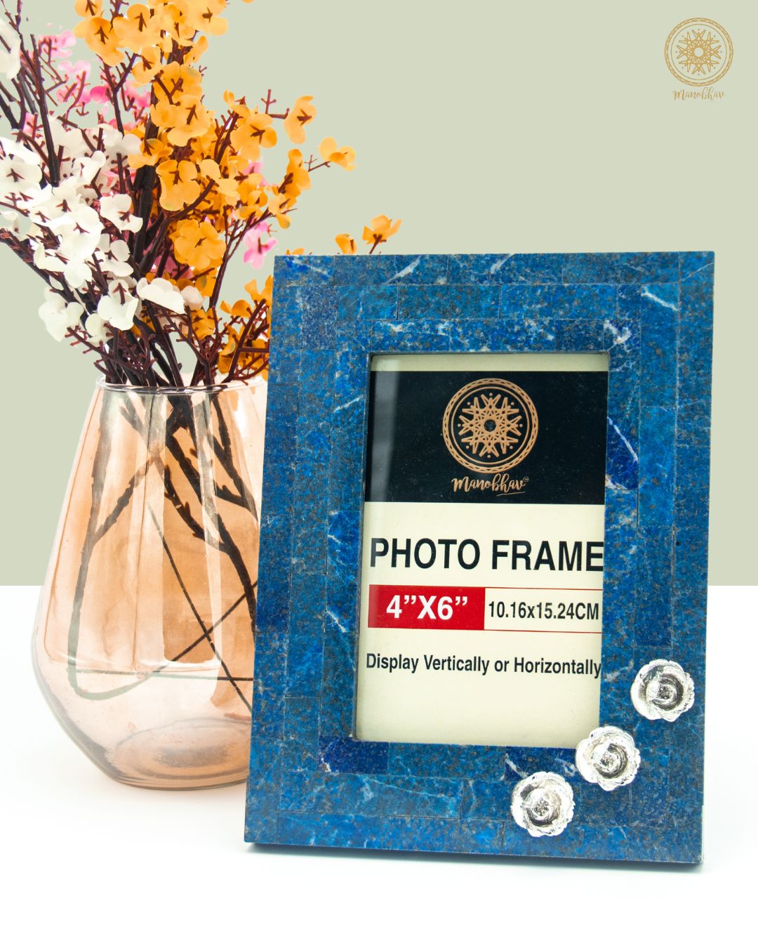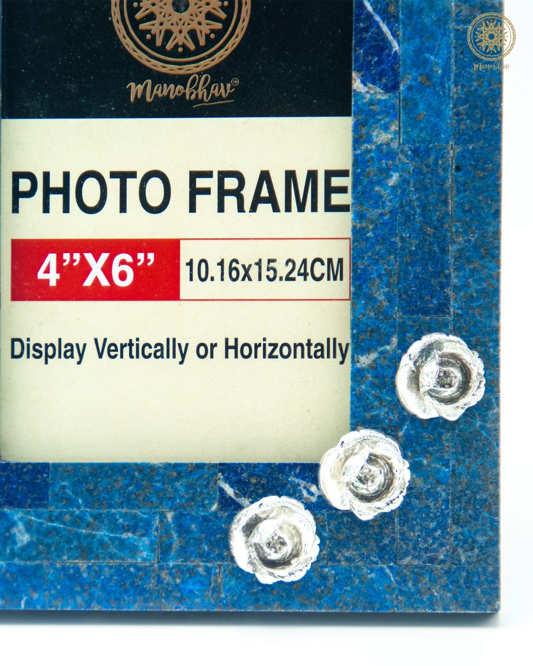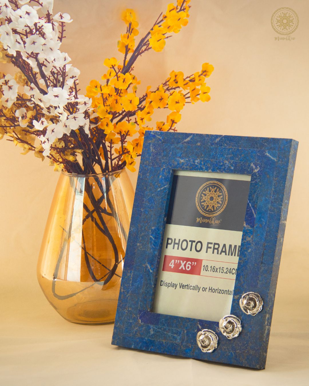 Blue Lapis Lazuli Photo Frame | Embellished With Silver Rose