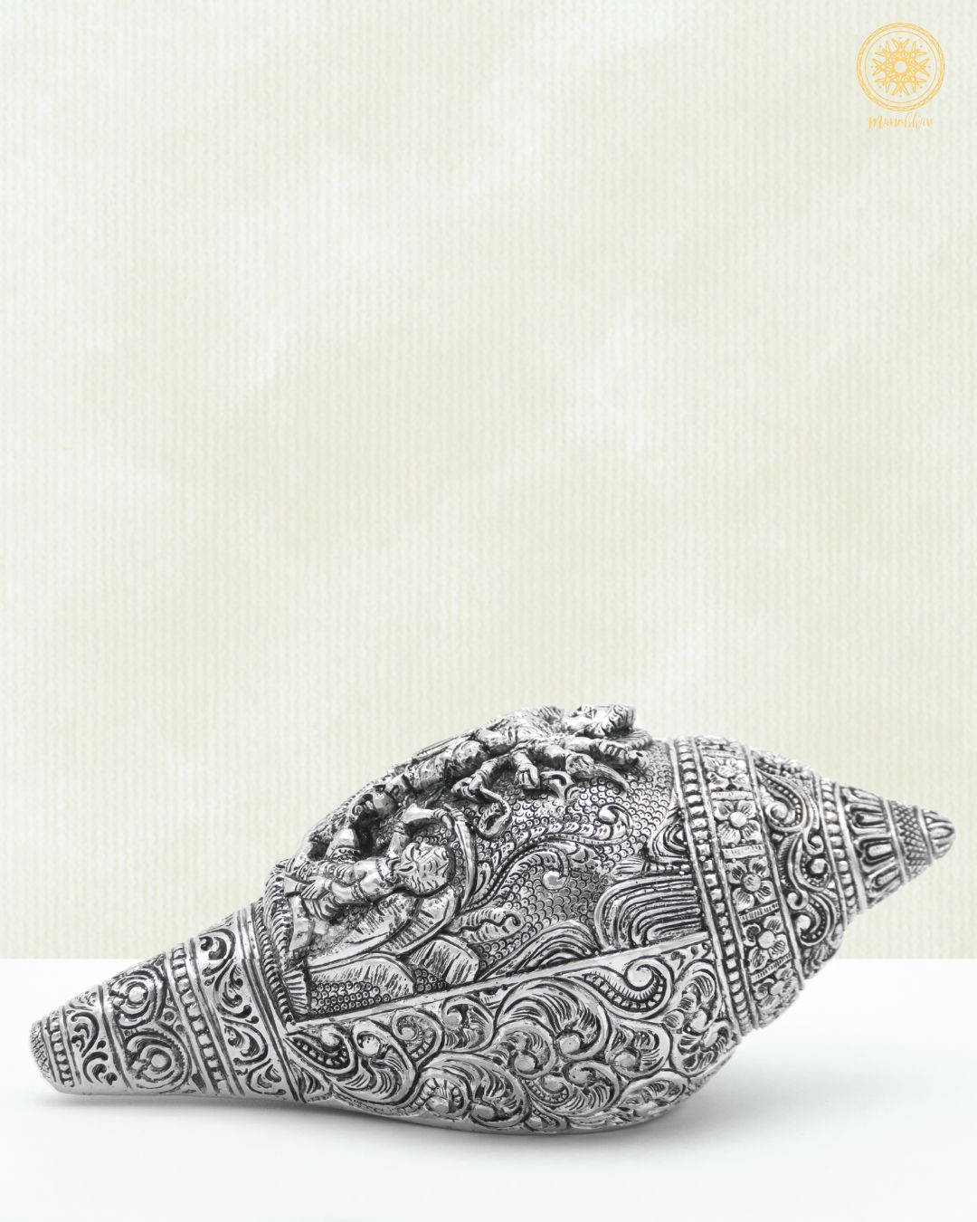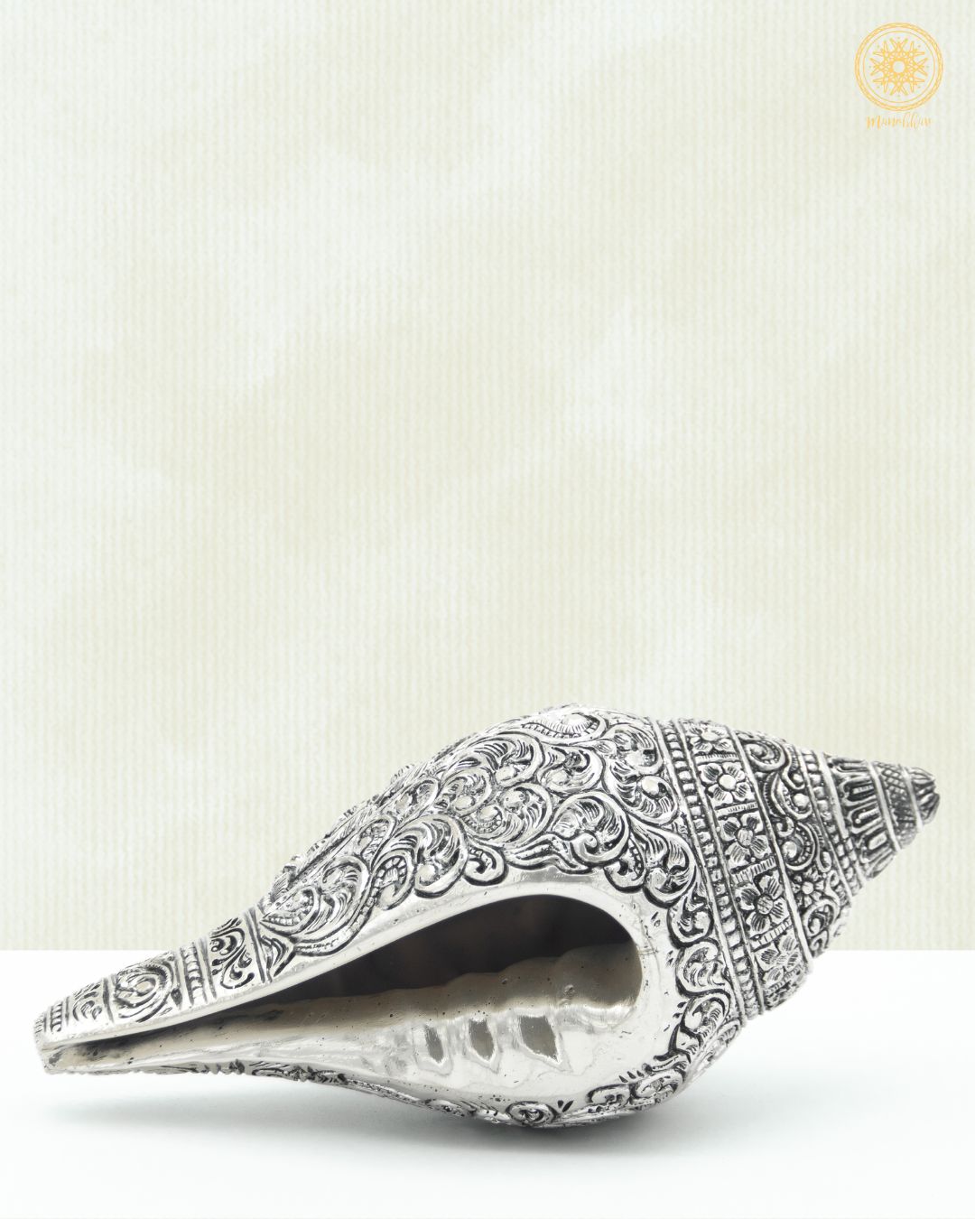 Handcrafted Silver plated Durga Conch Shell | Shankh