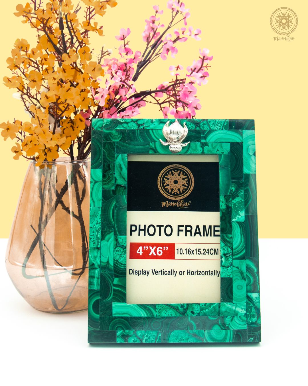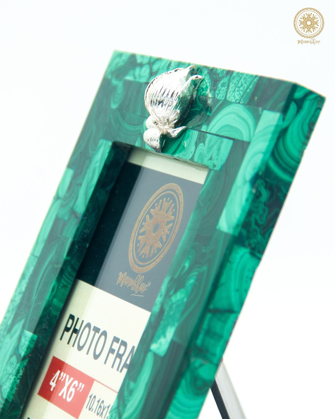 Natural Malachite Photo Frame | Embellished with Silver Lotus