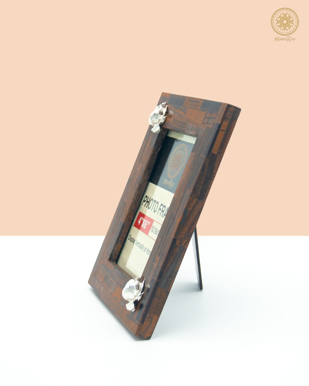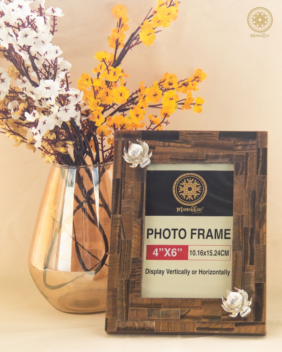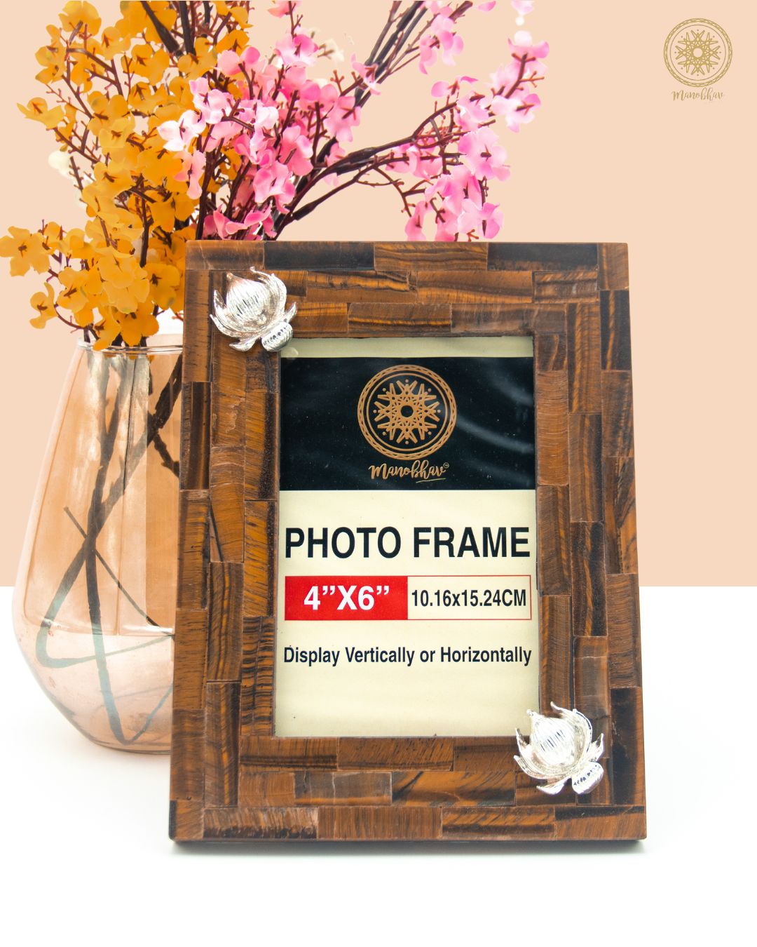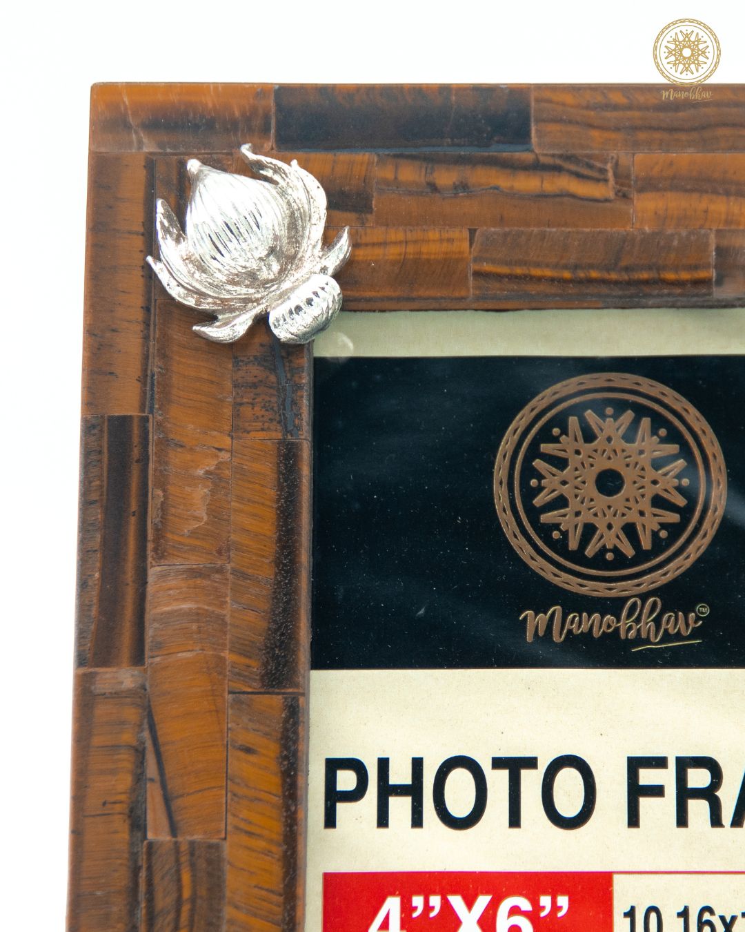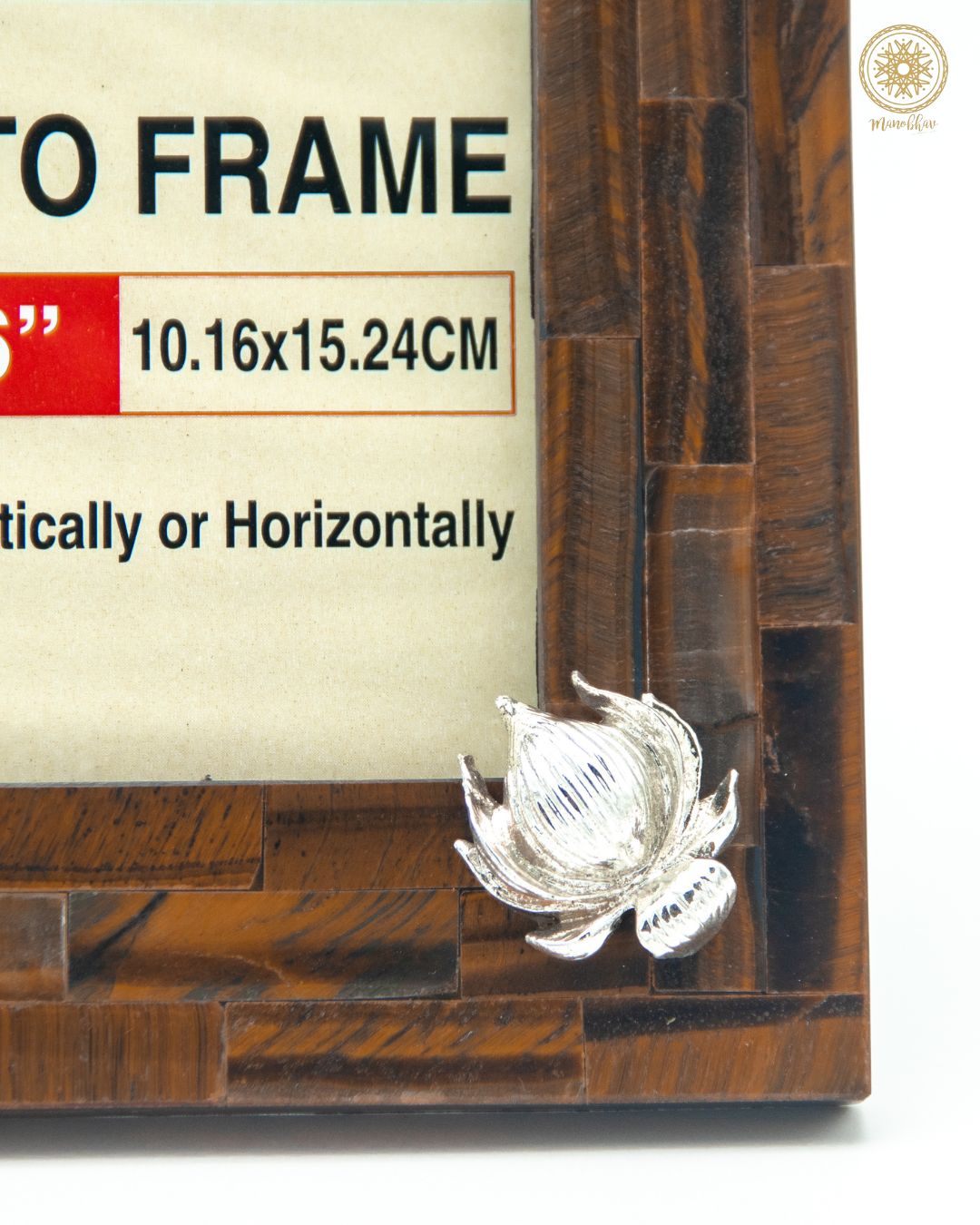 Natural Tiger Eye Photo Frame Stand | Embellished with Silver Lotus