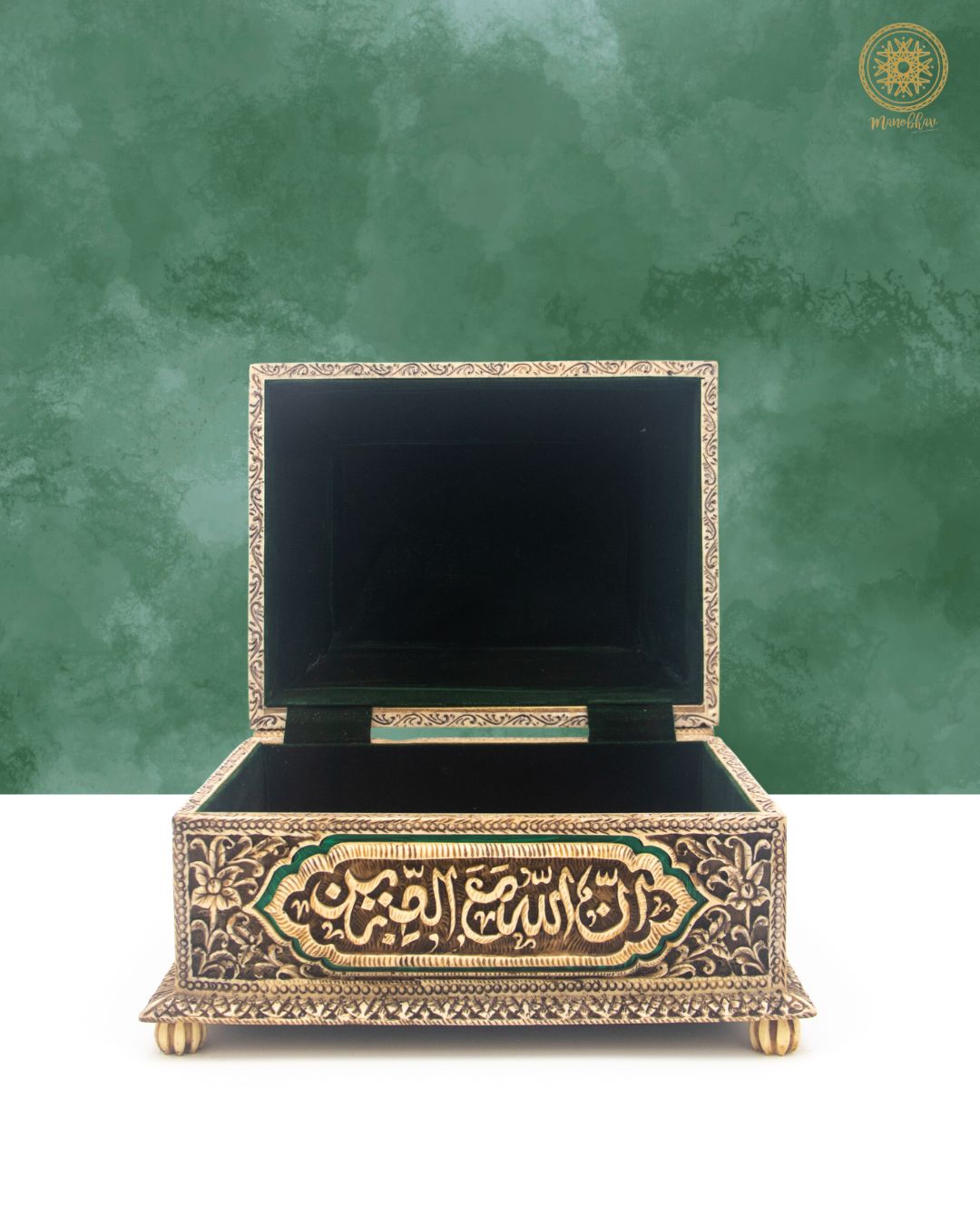 Buy Artisan-Crafted Jewelry Chest Box with Traditional Arabic Inscription | A Perfect Gift for Any Occasion.