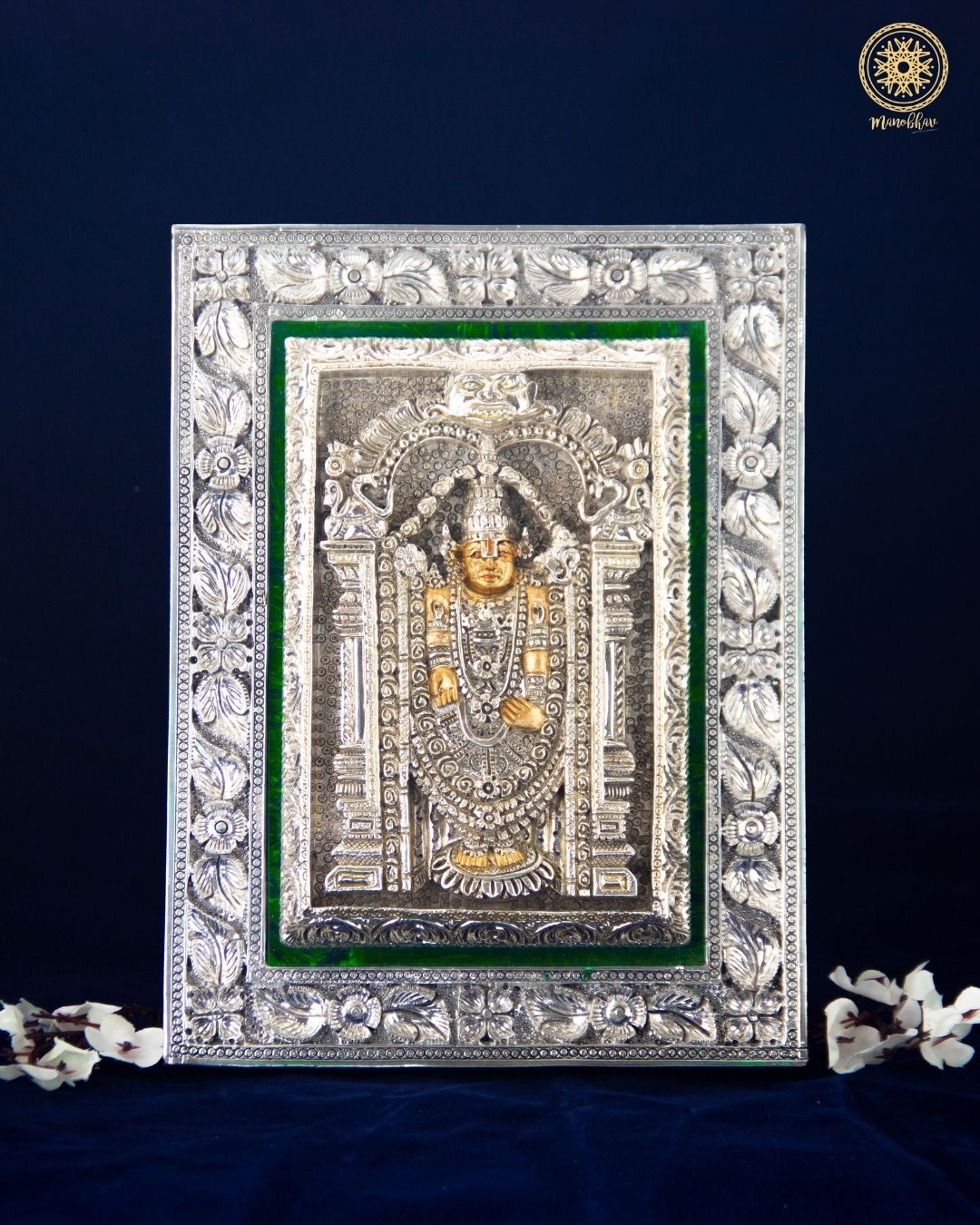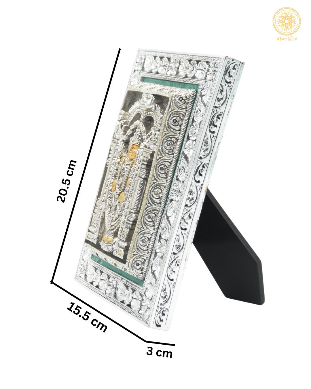 This tabletop frame features intricate hand-carved details, capturing the divine essence of Lord Tirupati Balaji. The gilded gold leaf adds a touch of opulence, making it a perfect centerpiece for your sacred space.
