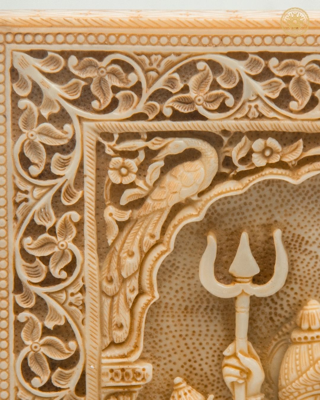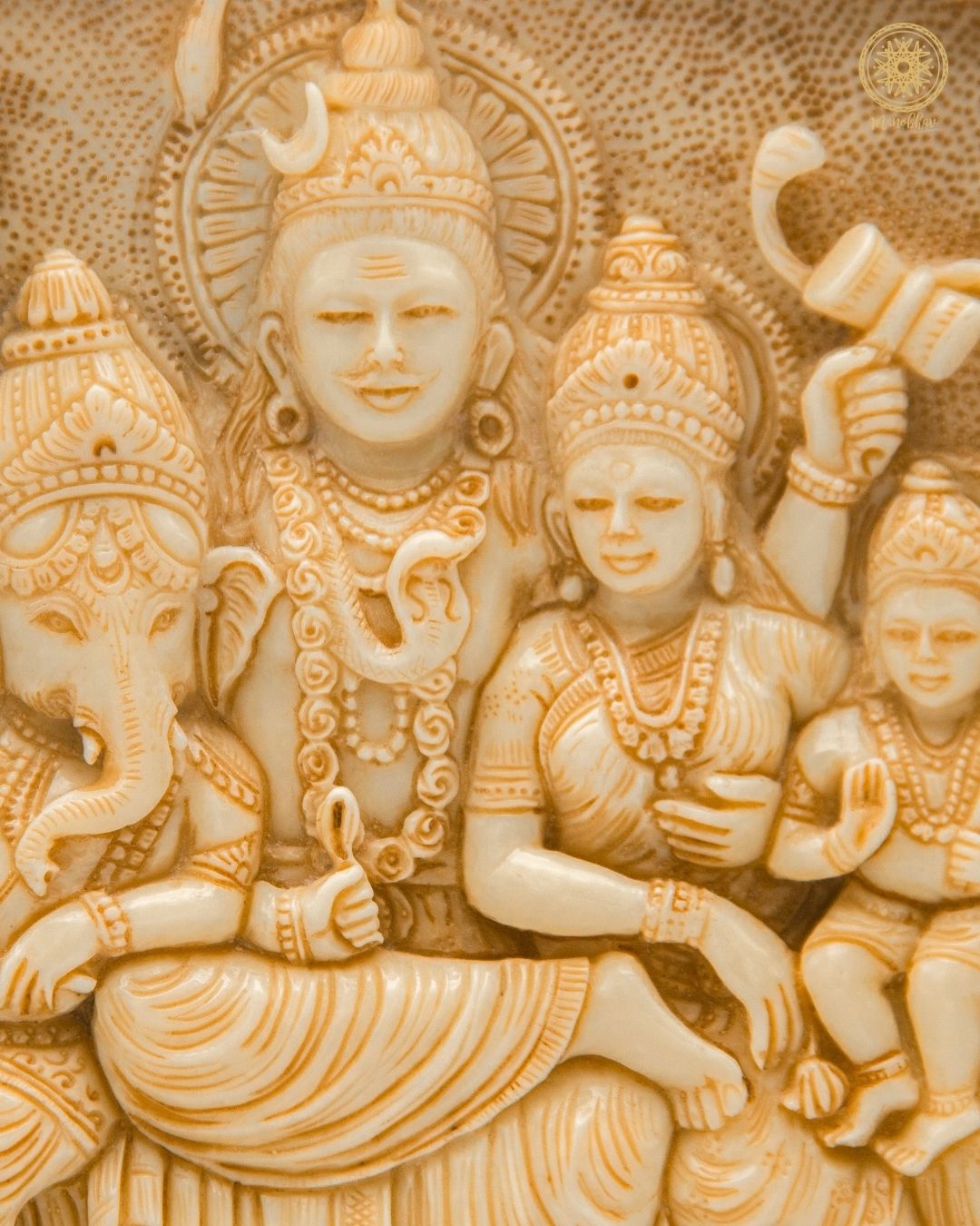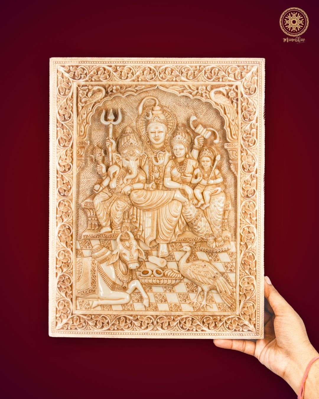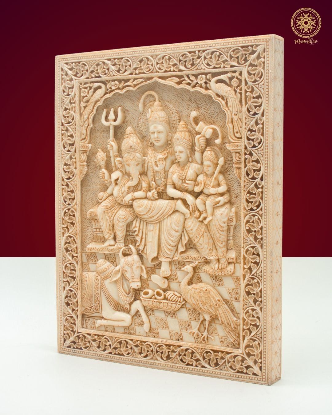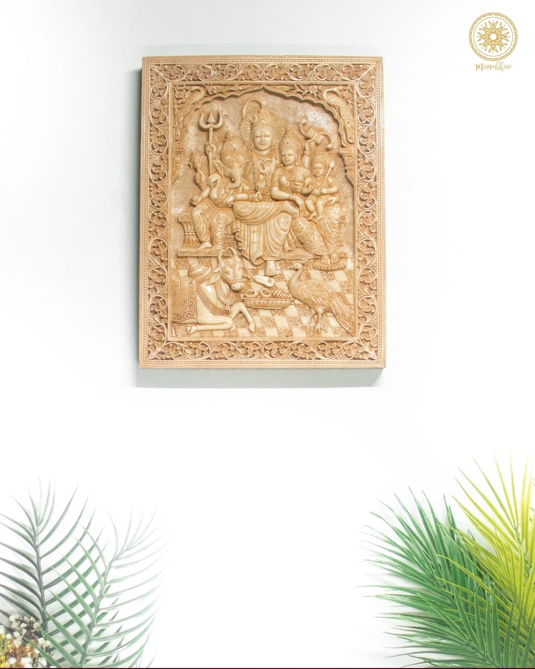Hand-Craved Shiva, Parvati, Kartikeya, Ganesha, Wall Hanging | Hindu God Sculpture | Decorative Wall Panel