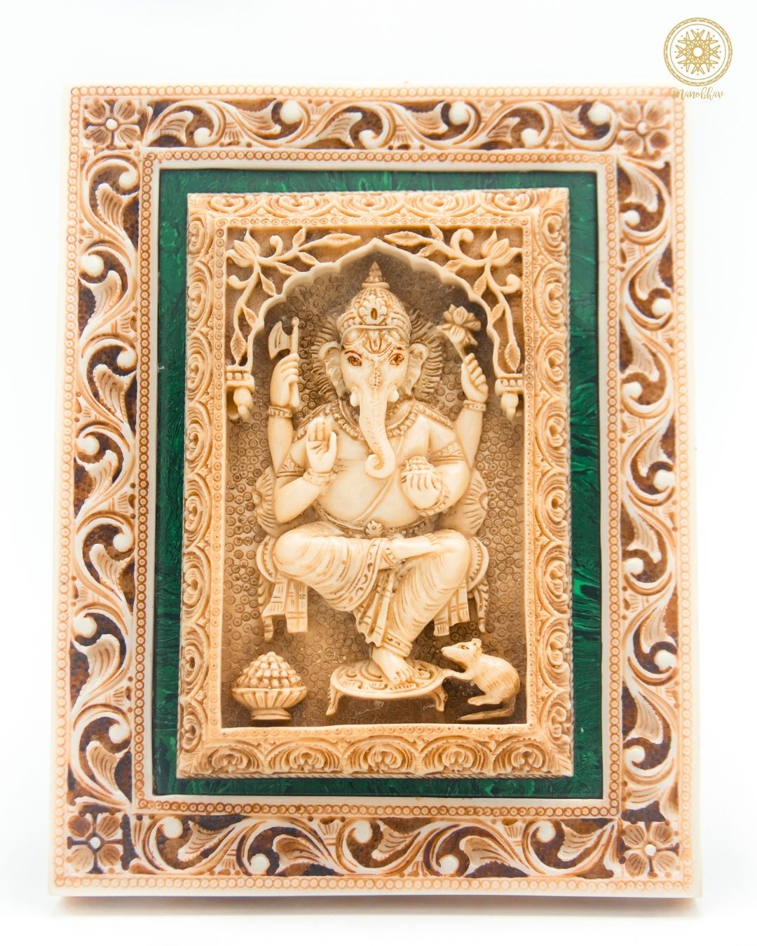 Cadre mural sculpté à la main représentant le Seigneur Ganesh | Décoration murale pour la maison