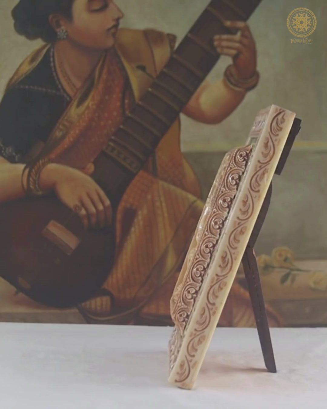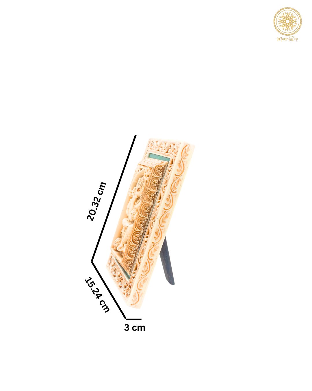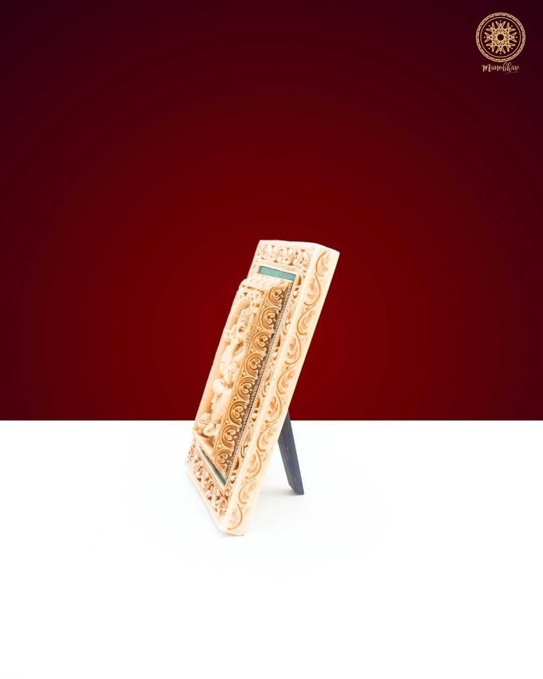 Notre cadre Ganpati et cadre photo de Ganesh ira bien dans les salles de pooja et comme élément de décoration attrayant n'importe où, que ce soit à la maison, au bureau ou à l'hôtel. Le travail d'incrustation de belle malachite apporte encore plus de beauté à cette pièce, ce qui en fait non seulement une pièce décorative mais aussi une déclaration de beauté et de tradition.