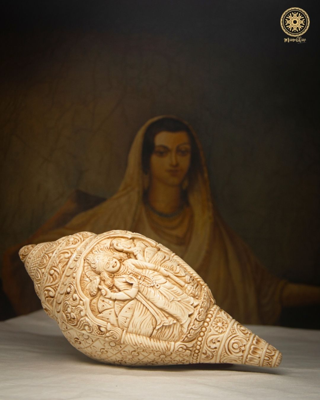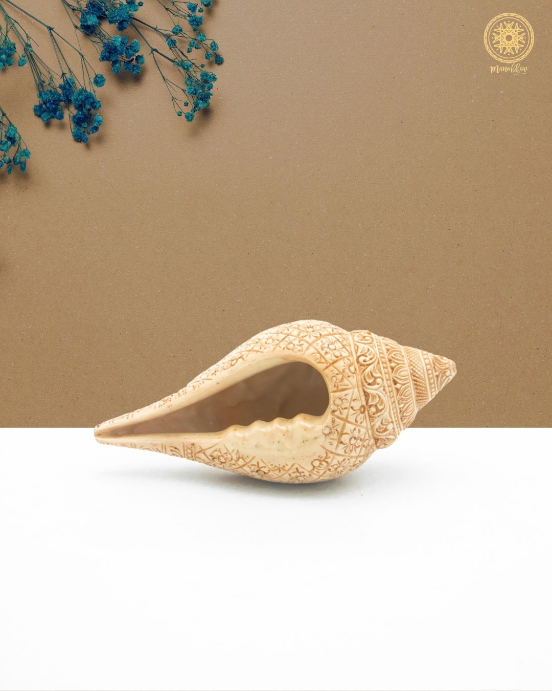 The conch shell is crafted with fine craftsmanship, which enhances any place of worship. It is believed to bring protection, prosperity, and positive energy, making it an ideal choice for Vishnu puja, religious ceremonies, and daily prayers.