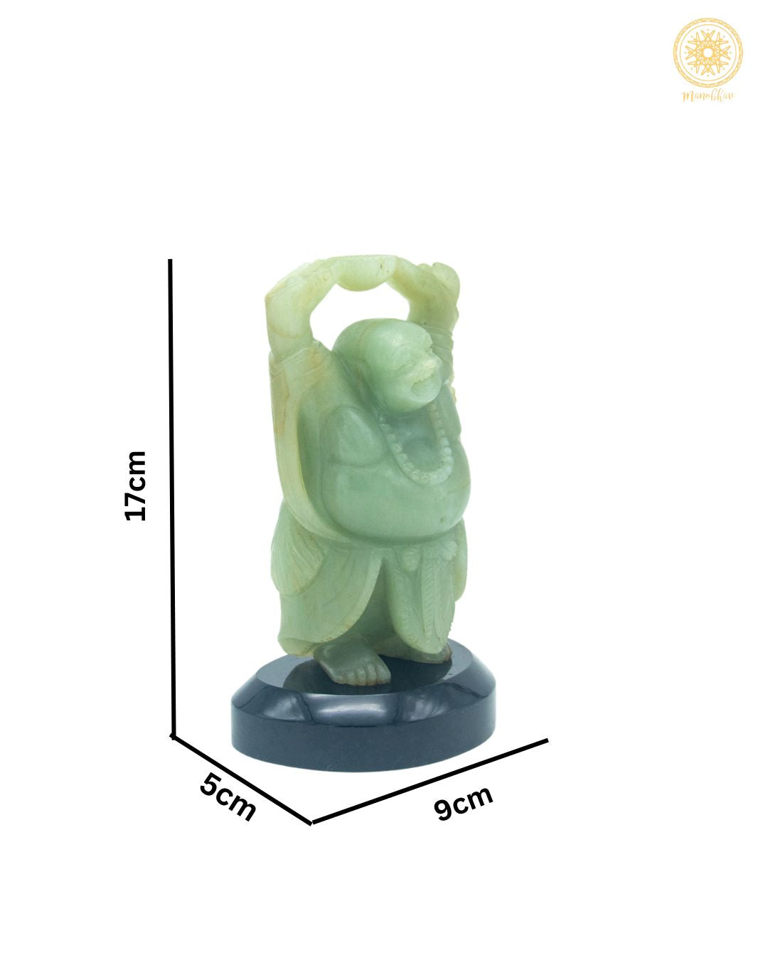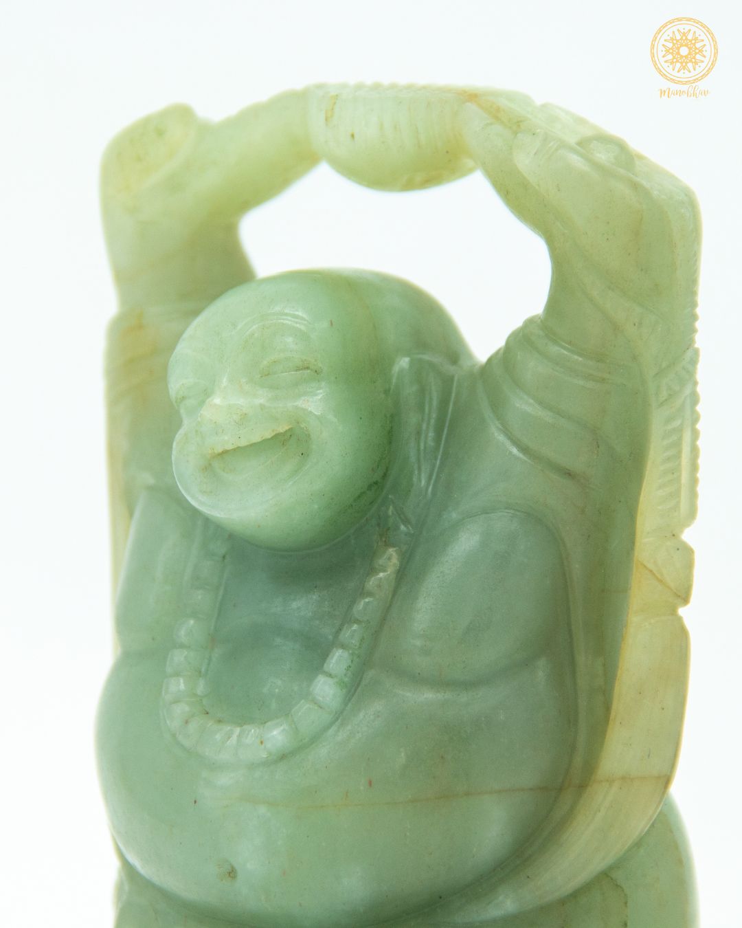 Statue de Bouddha rieur heureux en aventurine verte sculptée à la main