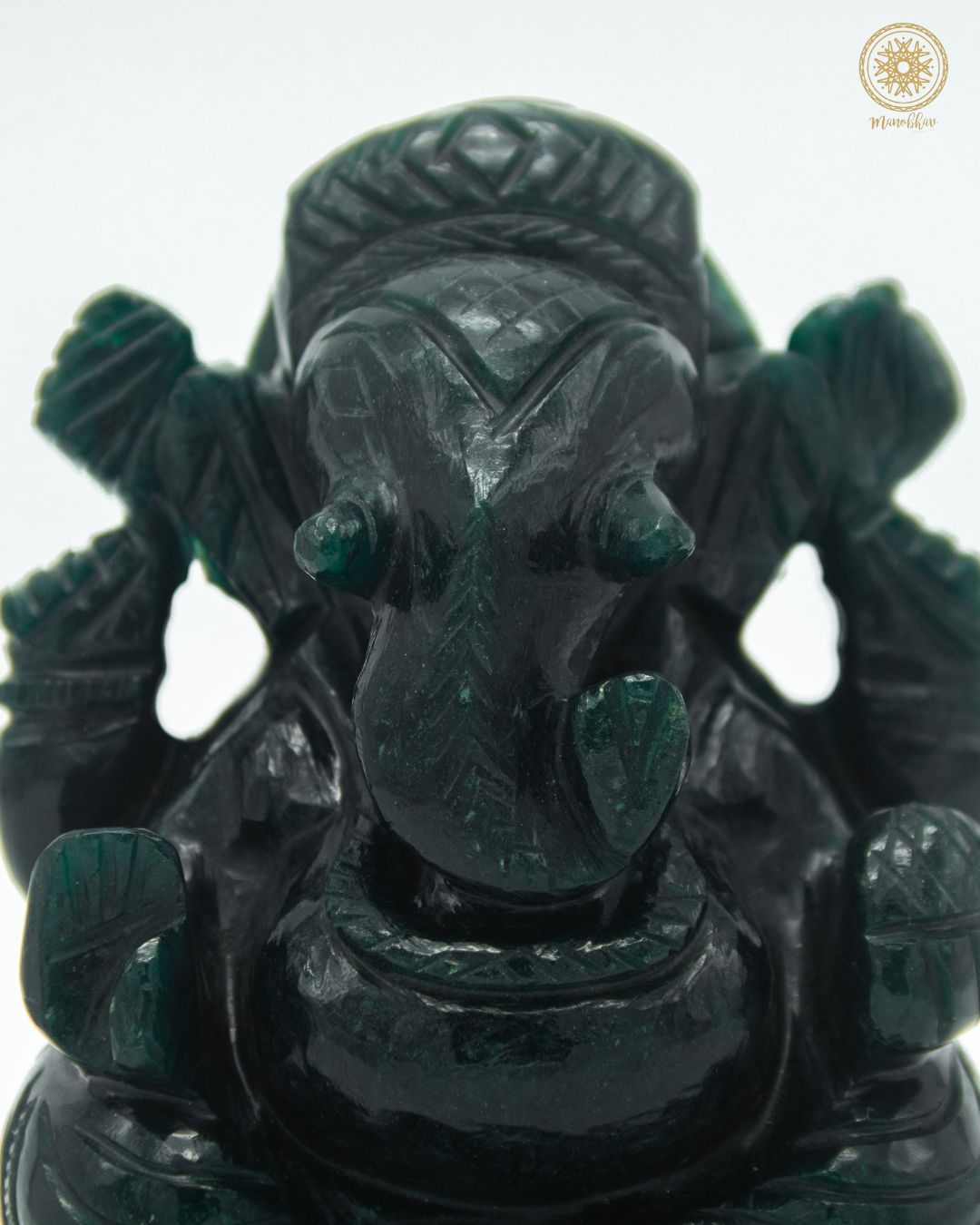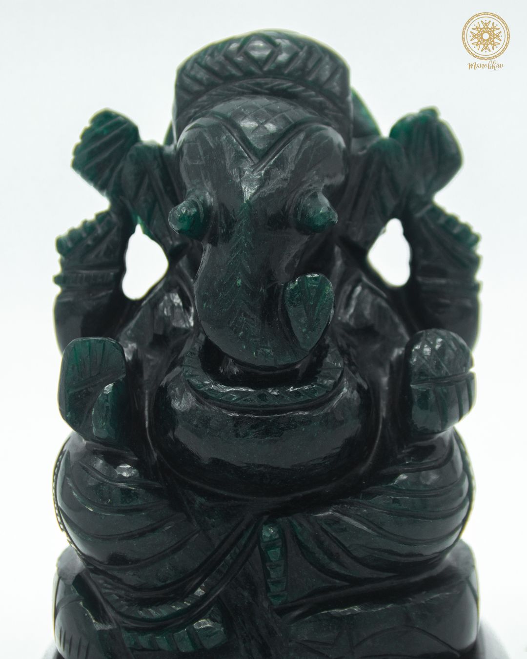 Statue du Seigneur Ganesh en aventurine verte naturelle | Statue artisanale