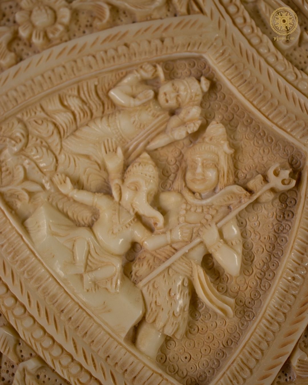 Perfect for your pooja room, meditation space, or living area, this Shiva Parivar wall art brings positive energy and devotion. The antique finish and vintage-style craftsmanship enhance its traditional appeal which makes it an ideal addition to any Hindu home or temple decor.