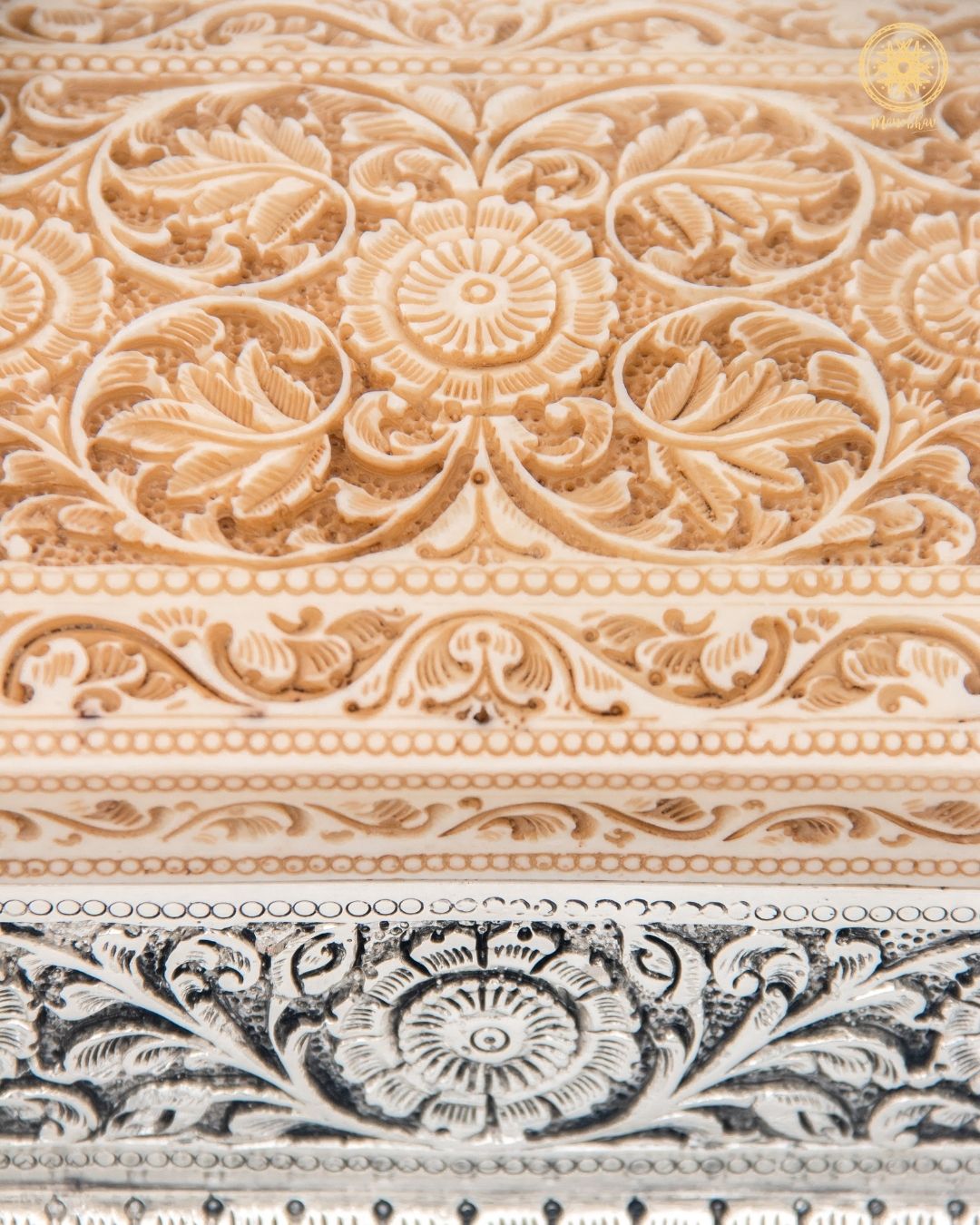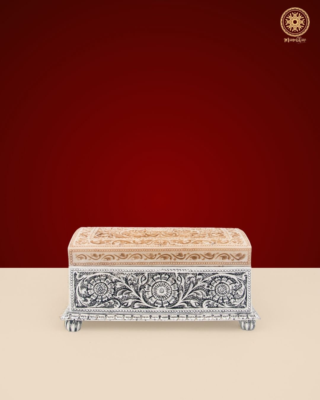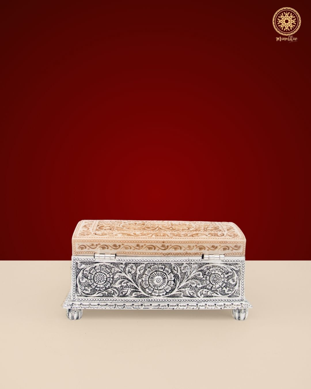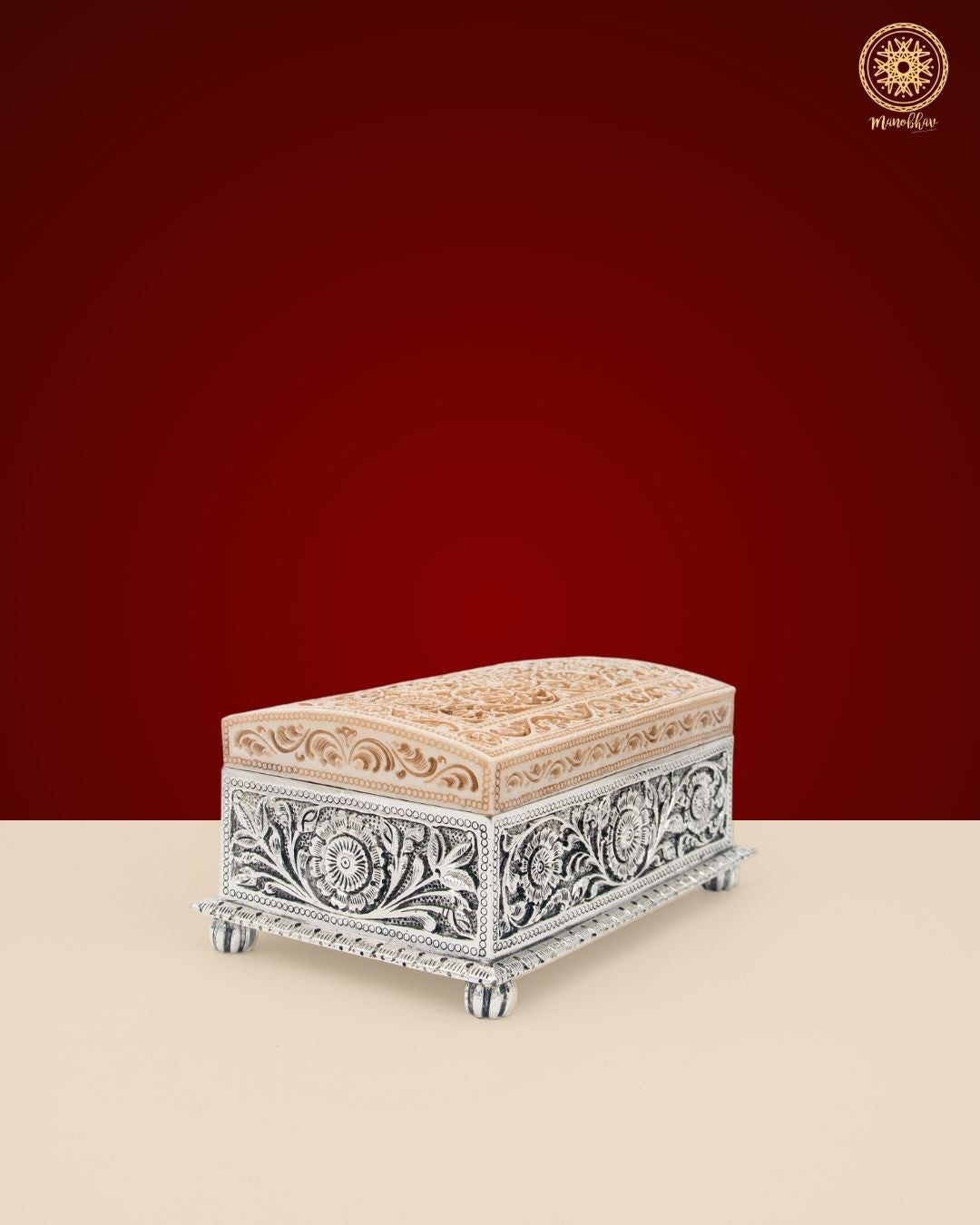 This vintage jewelry box with 3D flower patterns combines classic design with modern craftsmanship. Made with high-quality resin with silver-plating. The box features intricate carvings that provide the box with an antique touch, making it an ideal jewelry case for safekeeping your beloved jewelry. Be it a jewelry box of functional use or merely a showpiece, this one represent an aura of luxury. It can be used as an earring box and a jewelry chest as it is capable of holding earrings, necklaces and rings in perfect condition. The best jewelry box that every collector can ever have as it fuses beauty and practicality. This box brings luxury to any room and is ideal for any pedestal. Storage is just an overstatement. It can be considered decorative.