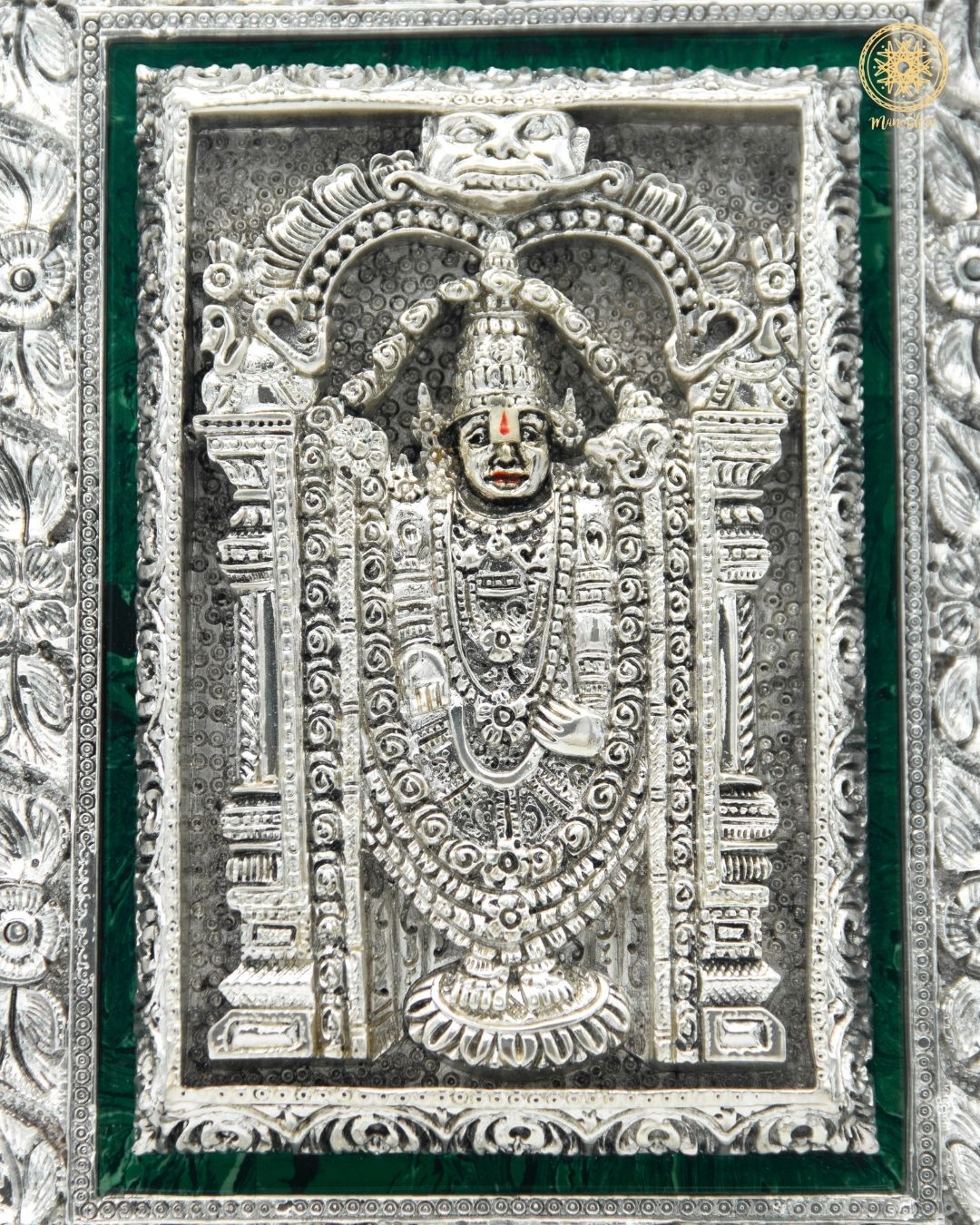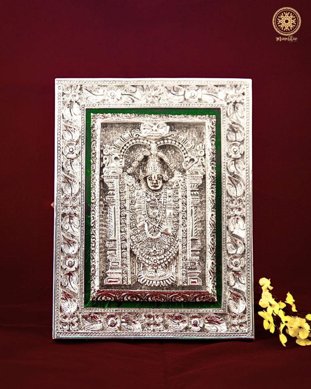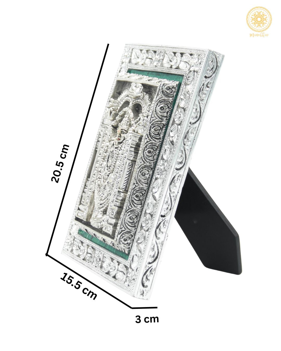 Cadre Balaji de Tirupati sculpté à la main | Plateau de table plaqué argent