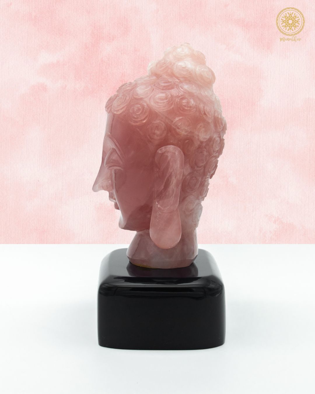 Statue de Bouddha en quartz rose naturel | Plateau de table en pierres précieuses sculptées à la main