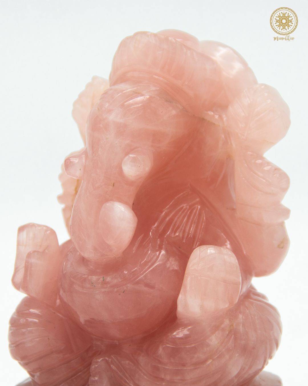 Statue de Ganesh en quartz rose naturel | Pierre précieuse sculptée à la main