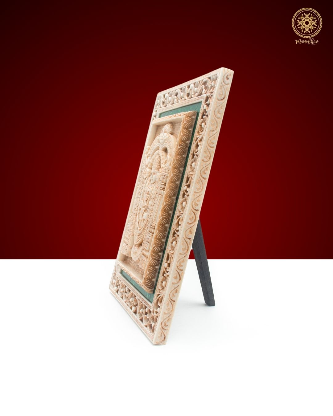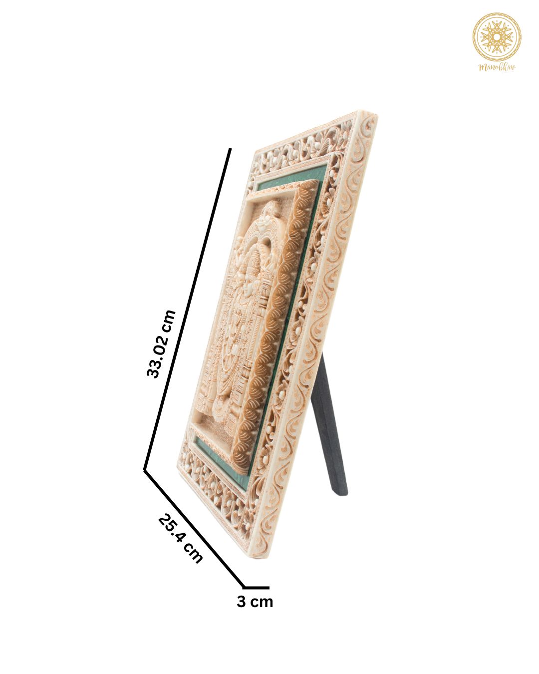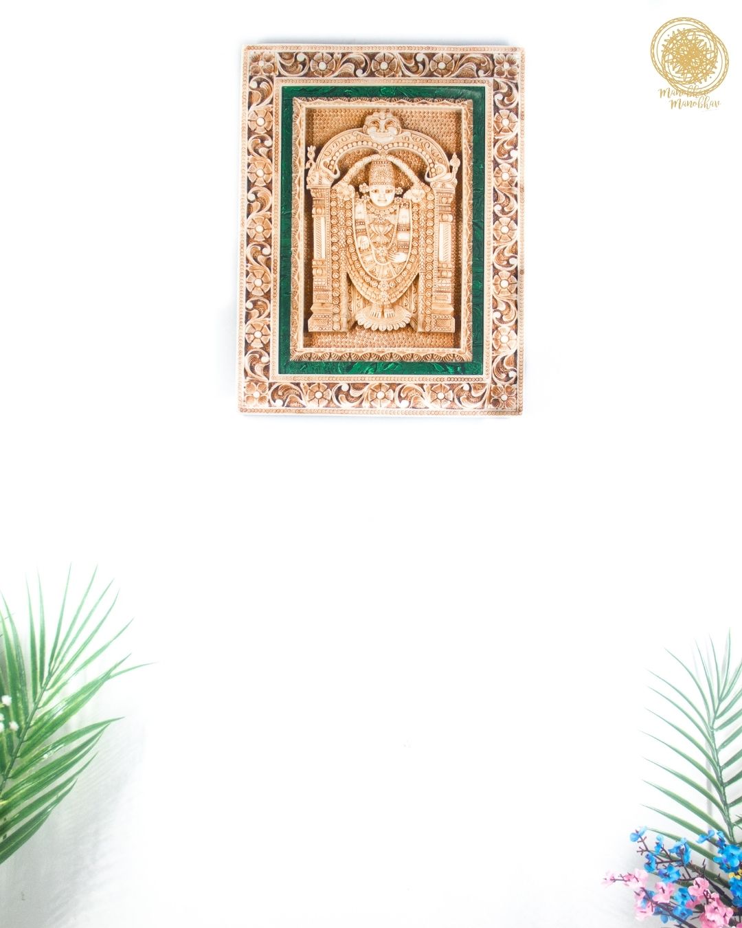 Cette superbe tenture murale Tirupati Balaji avec incrustation de malachite est une tenture divine qui rehaussera n'importe quel espace. Des sculptures complexes et une finition riche capturent l'essence du Seigneur Balaji, apportant un sentiment de paix, de protection et de prospérité dans votre maison. Que vous soyez un fervent dévot ou que vous appréciiez simplement une belle décoration, ce cadre Balaji est un incontournable. C'est un ajout esthétique époustouflant ainsi qu'un symbole spirituel fort. La tenture murale Balaji est un excellent objet de collection, embellissant son espace et servant d'investissement dans l'art et la spiritualité.