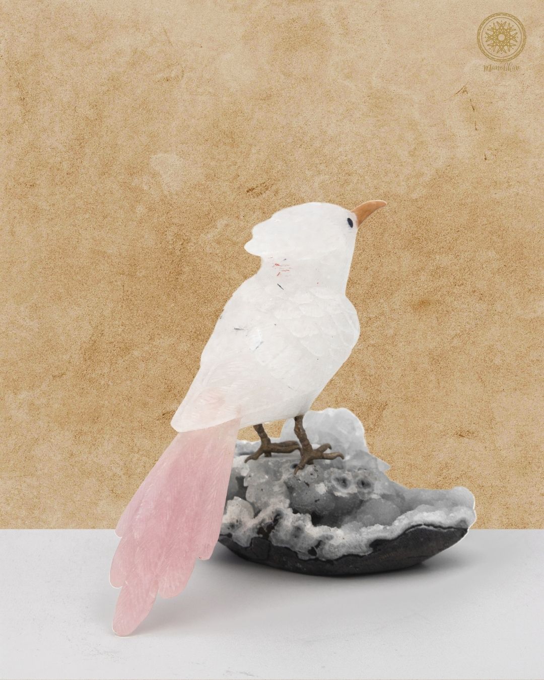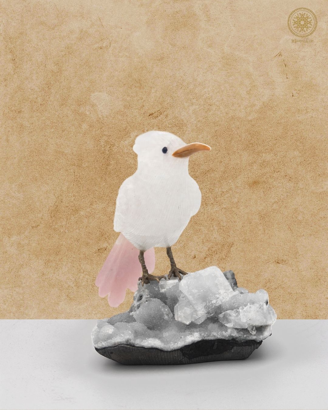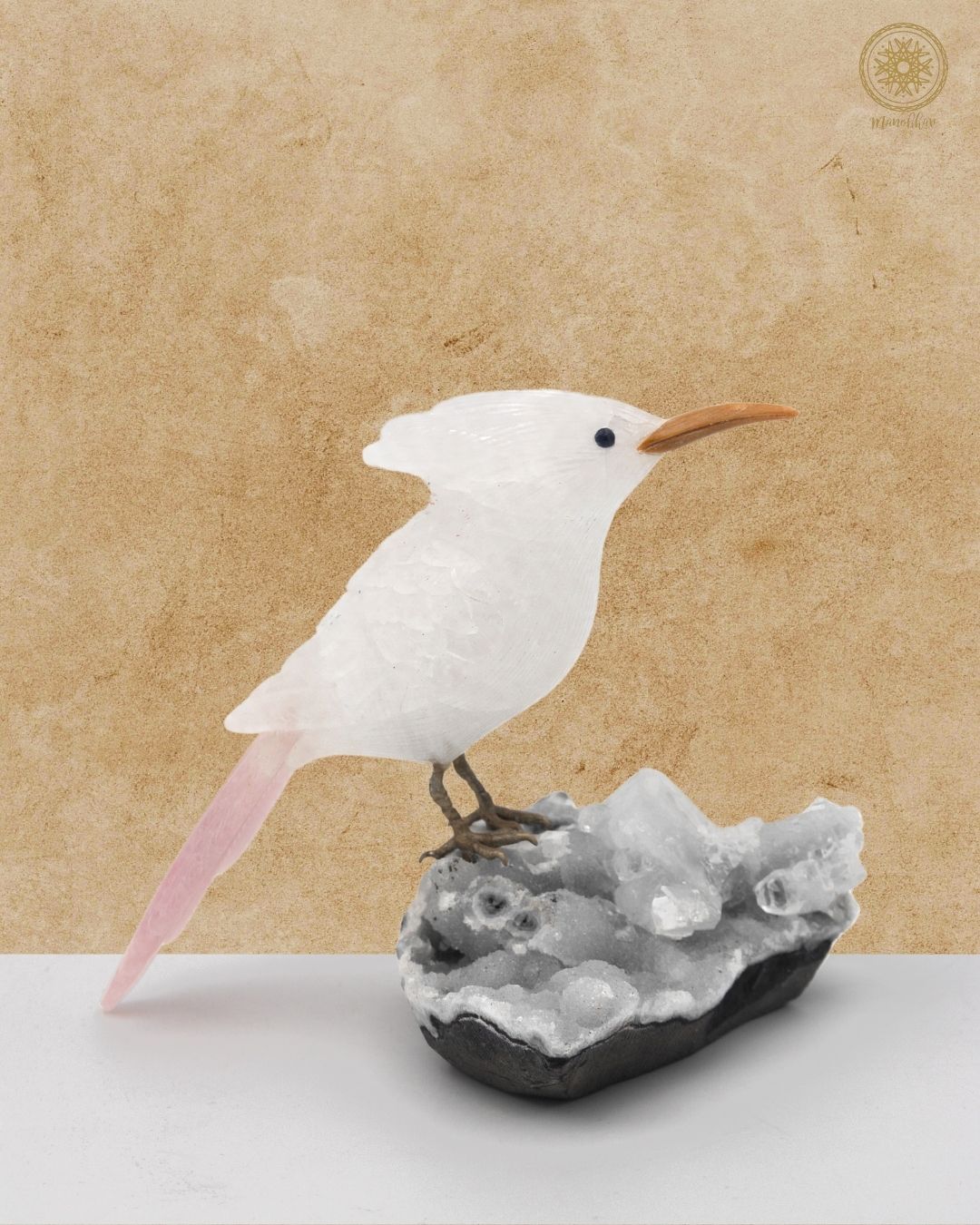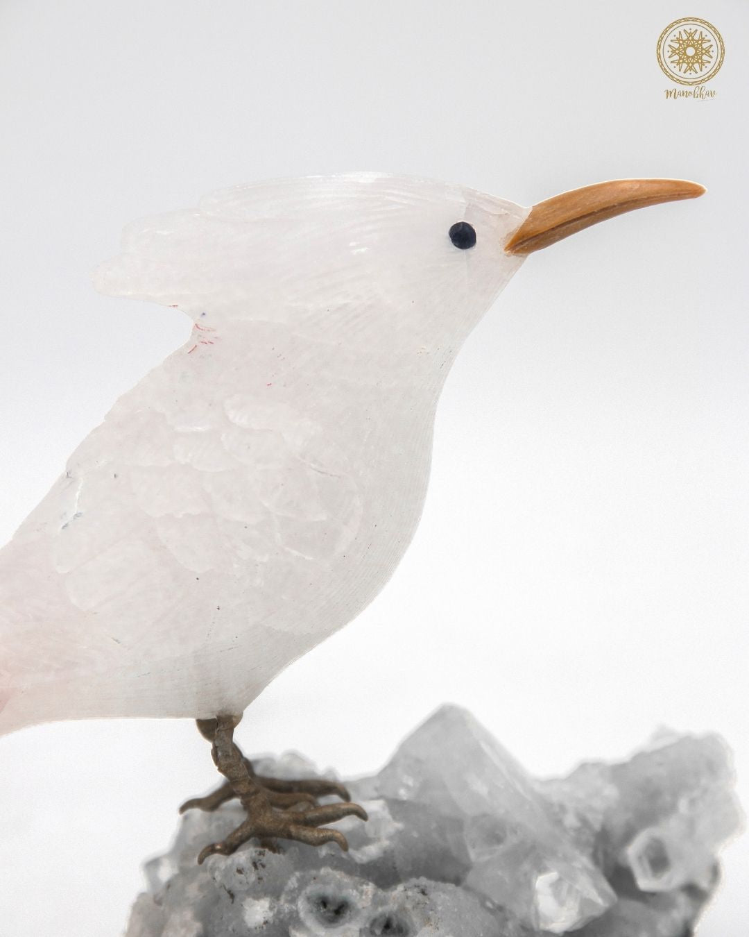 Hand-Carved White Quartz Bird Figurine | Luxury Home Decor Piece