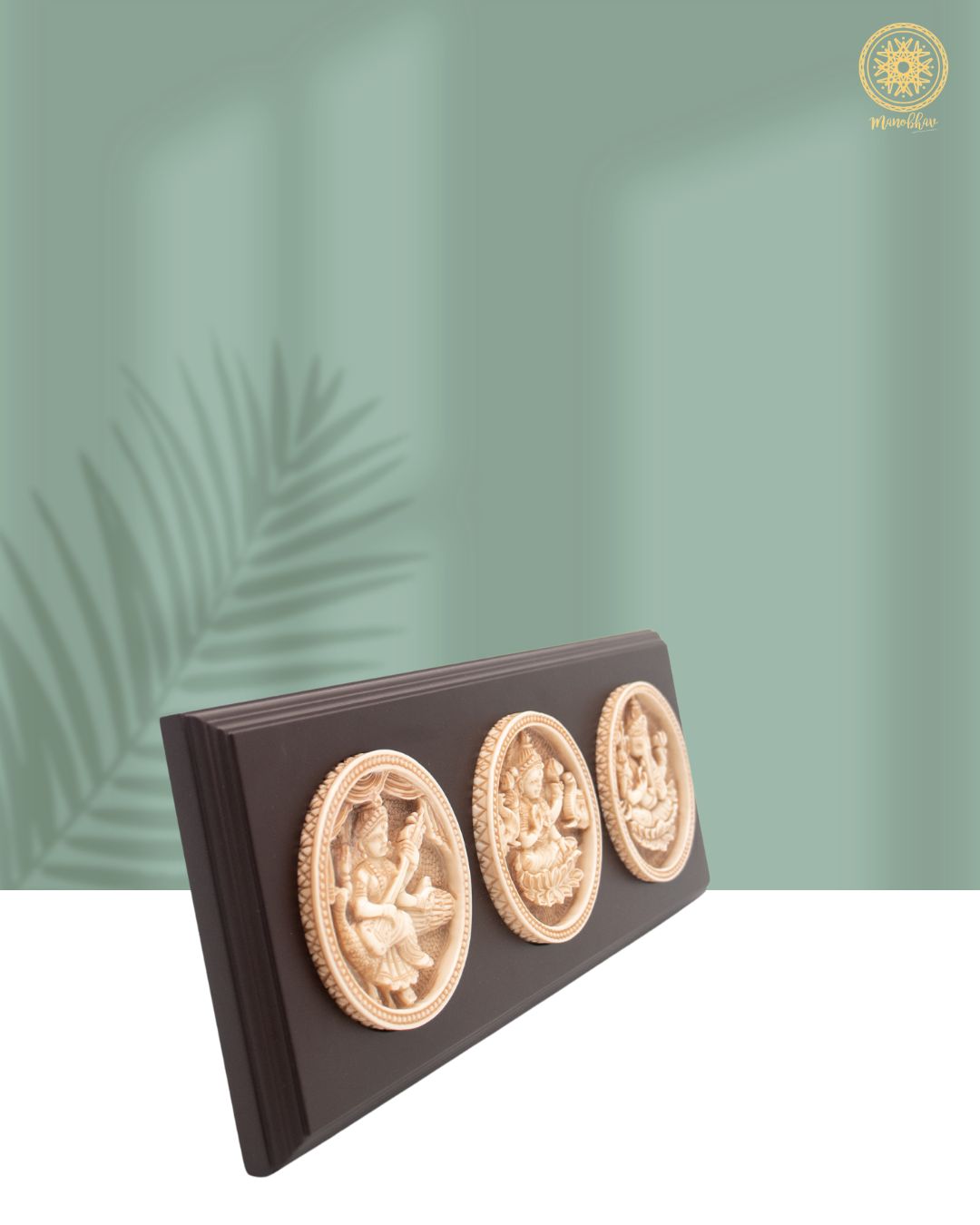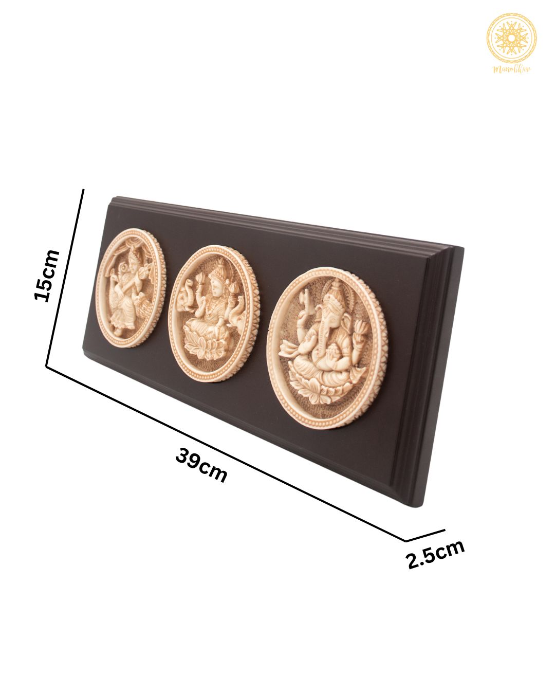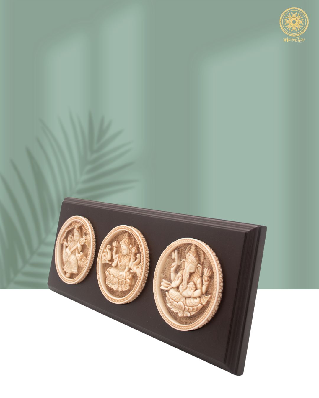 Buy Divine Saraswati Lakshmi Ganesh Wall Hanging | Wooden & Resin Frame Online.