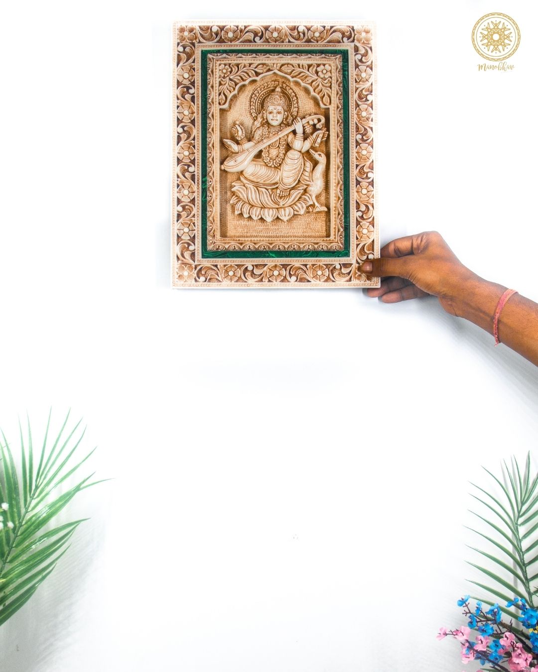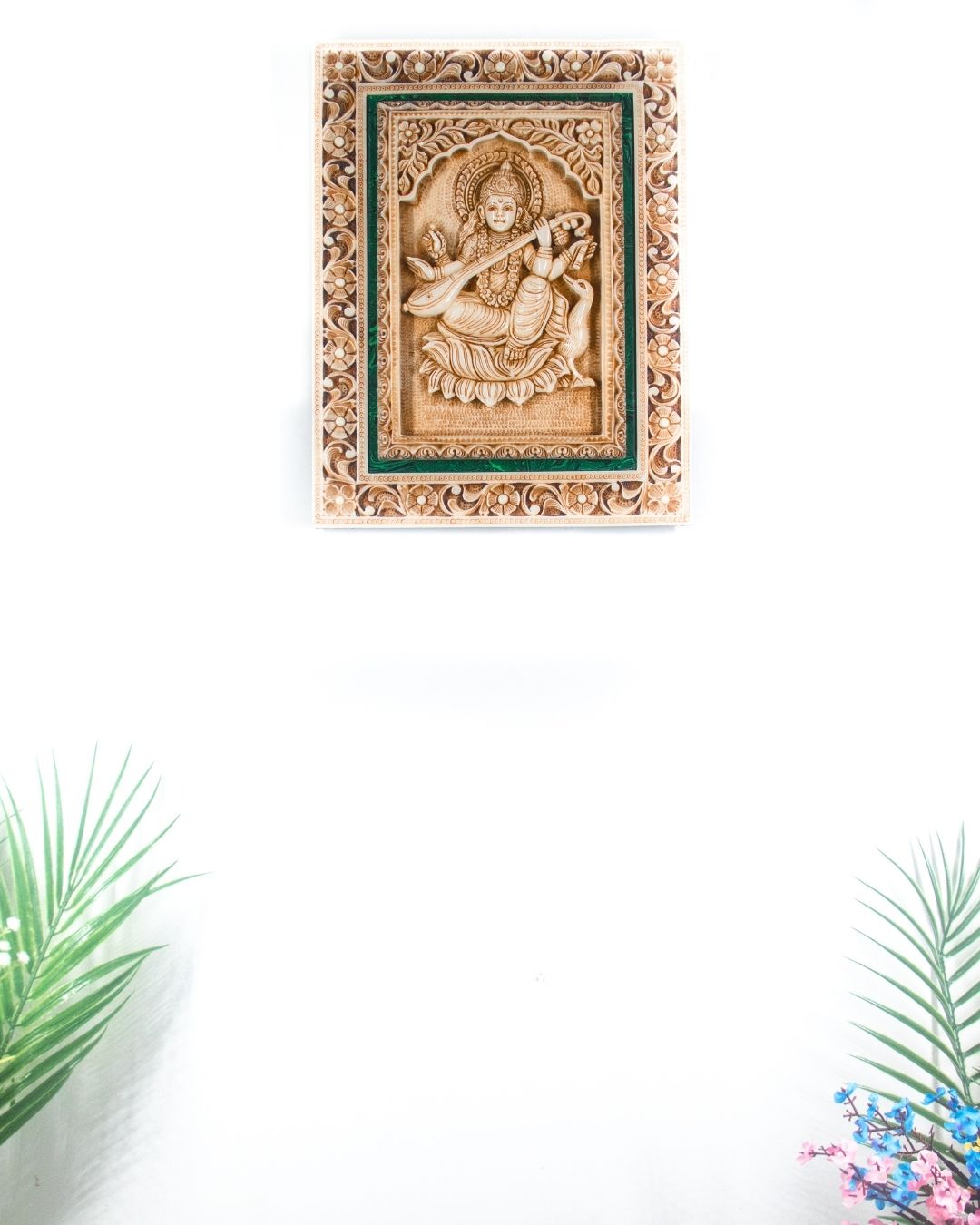 Buy Hand Carved Goddess Sarasvati Wall Hanging Frame, Spiritual Home & Office Decor online.