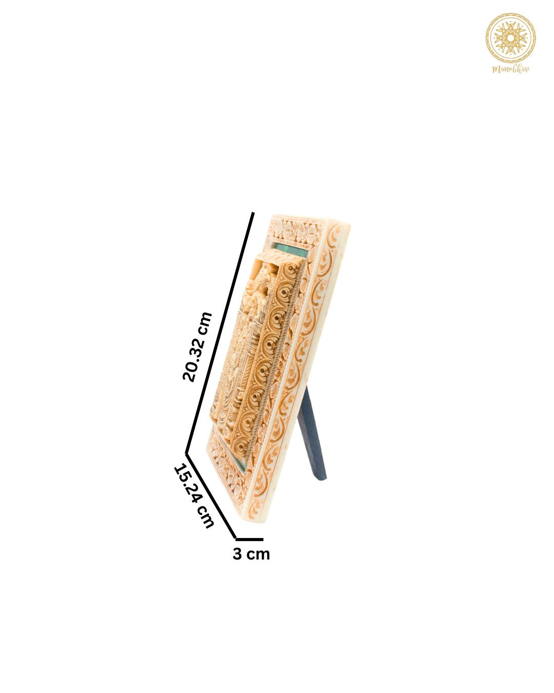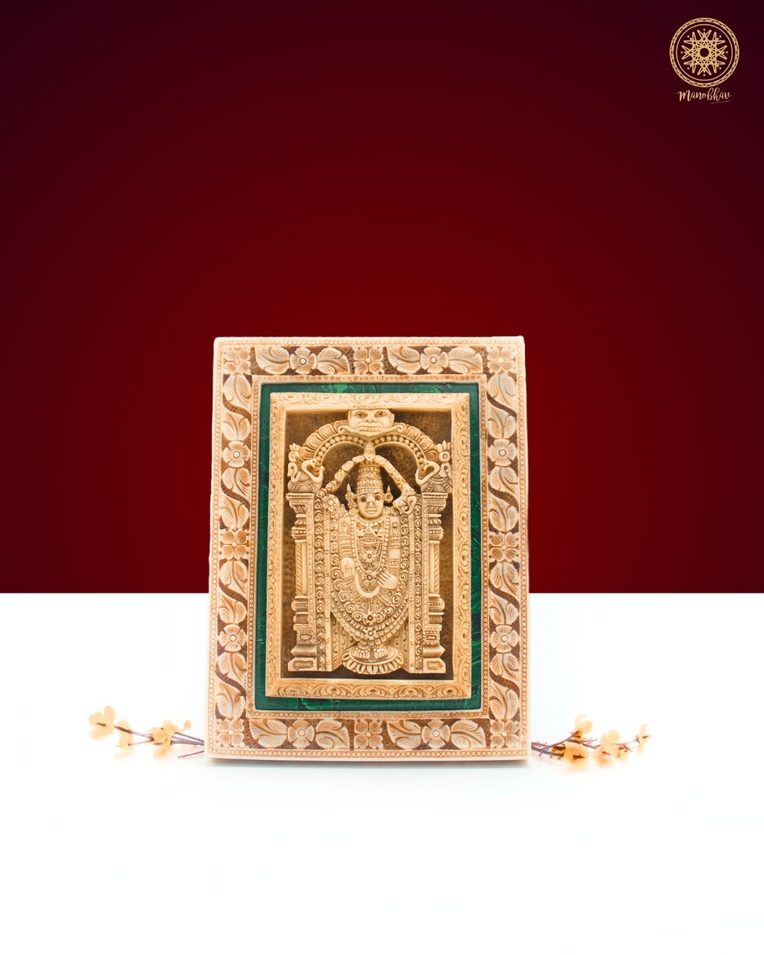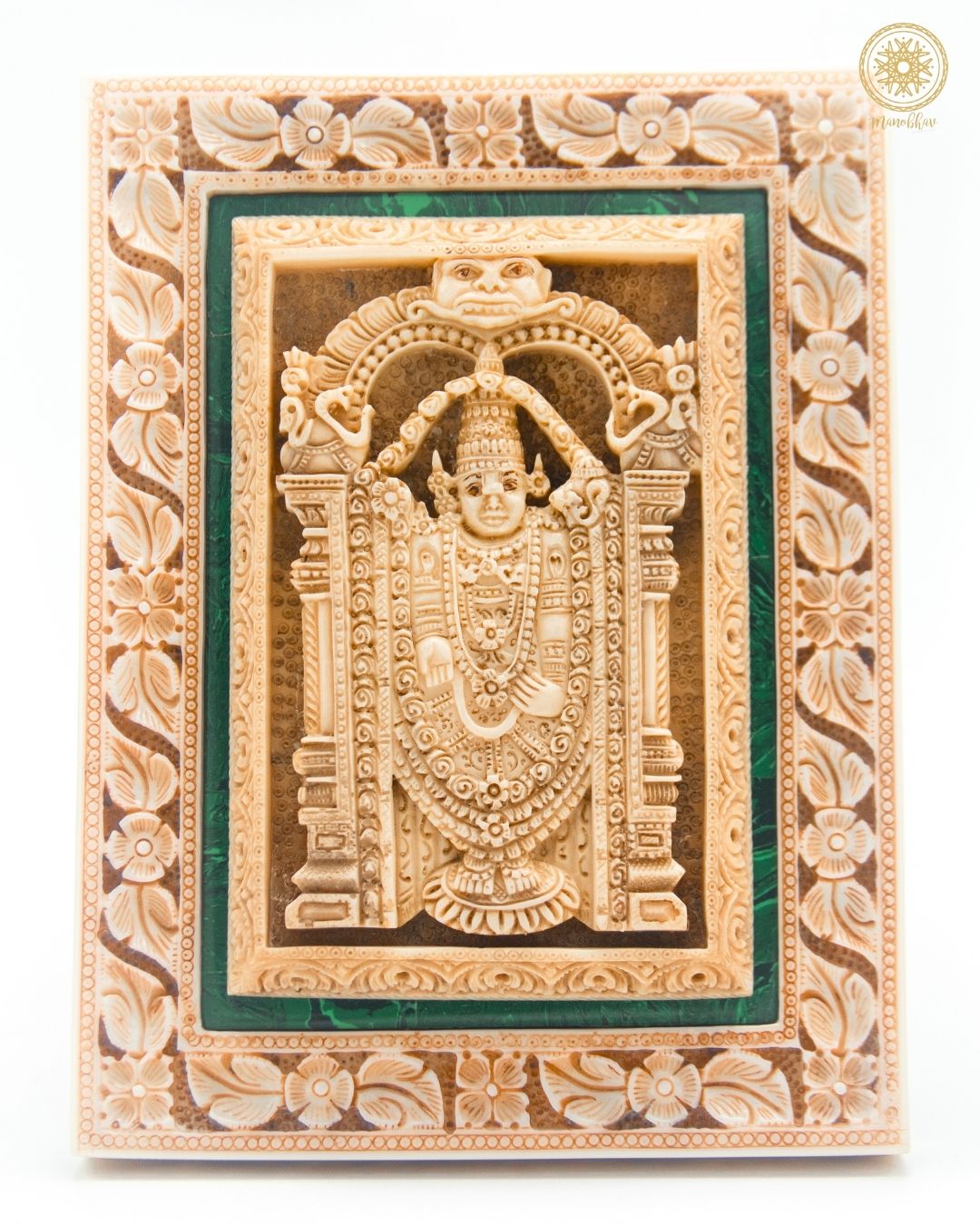 This beautifully crafted Tirupati Balaji wall hanging frame with malachite inlay is the presence of divinity that will lighten up any place. The beautiful carvings and rich finish capture the essence of Lord Balaji, bringing peace, protection, and prosperity into your homes. While being a beautiful aesthetic addition, at the same time, it represents an incredibly powerful spiritual symbol. Being a collector's item status, it is an antique beauty and at the same time, an investment in everlasting art and spirituality. This wall hanging strikes just the right balance between tradition and style by combining the unique richness of Indian heritage with a modern design. It is a gift that should be given to loved ones on any occasion and preciously kept in a household forever.