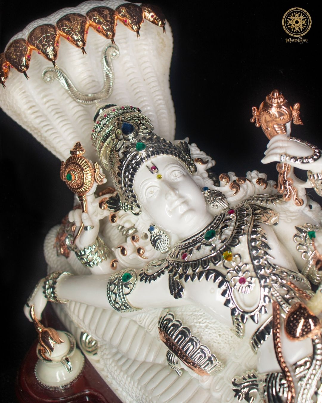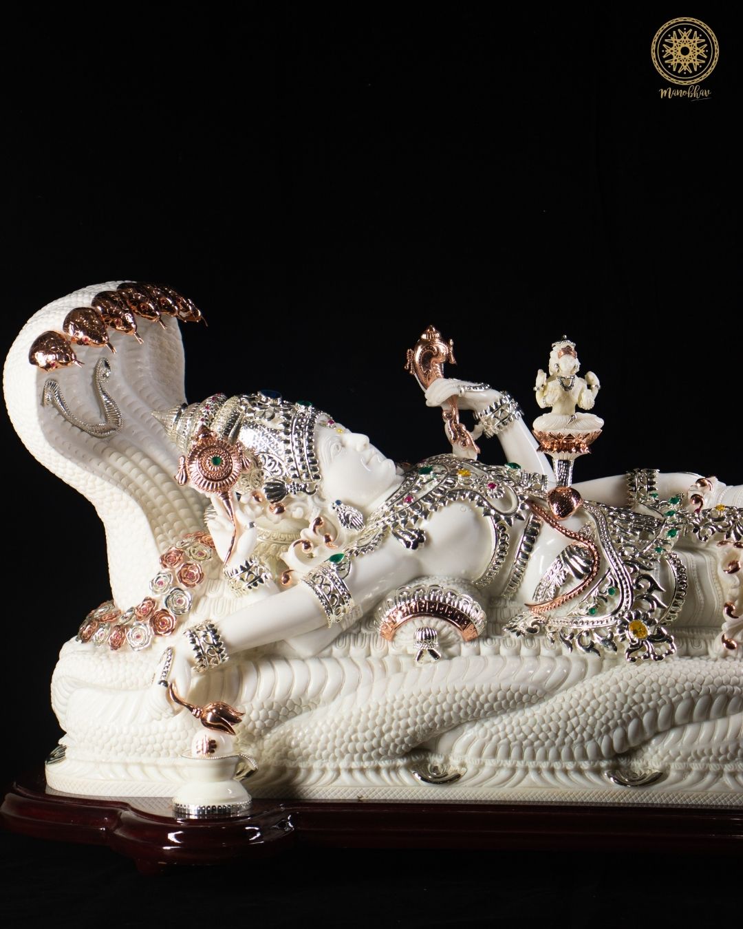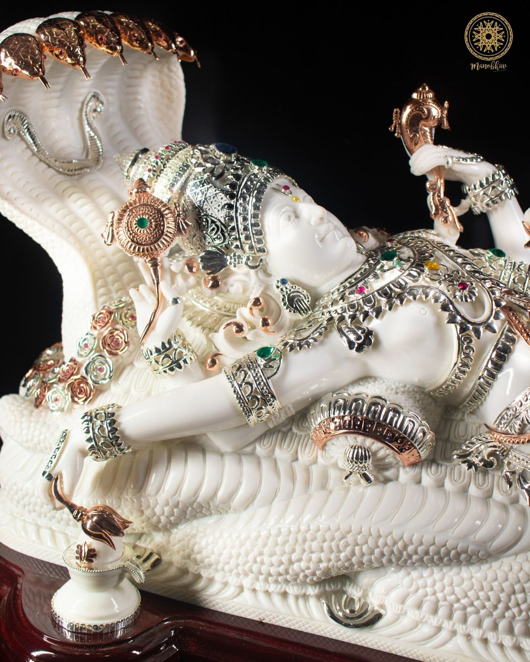 Buy Hand-Carved Vishnu Ji Sleeping Marble Dust Statue Online.