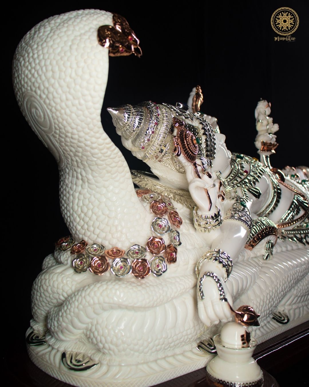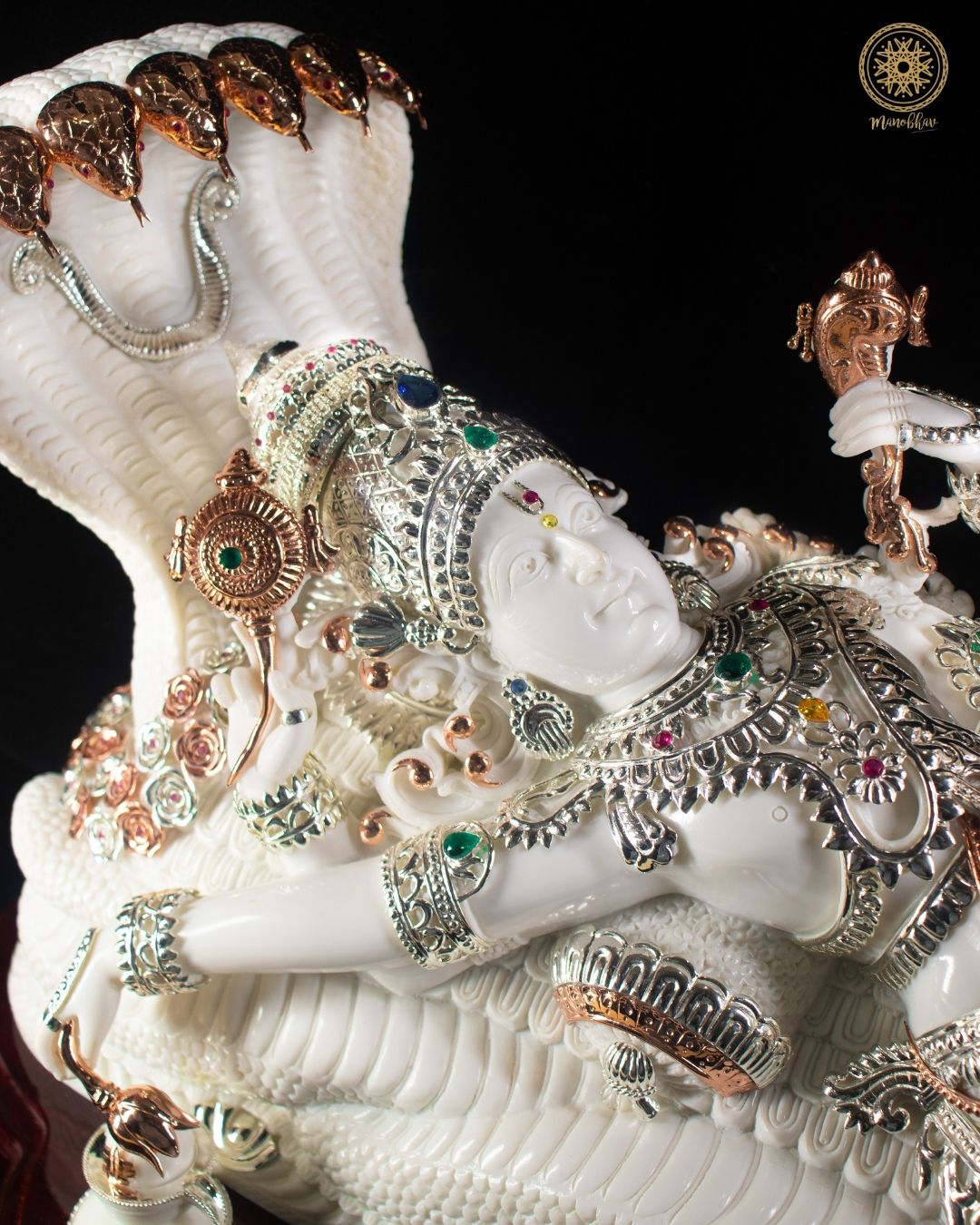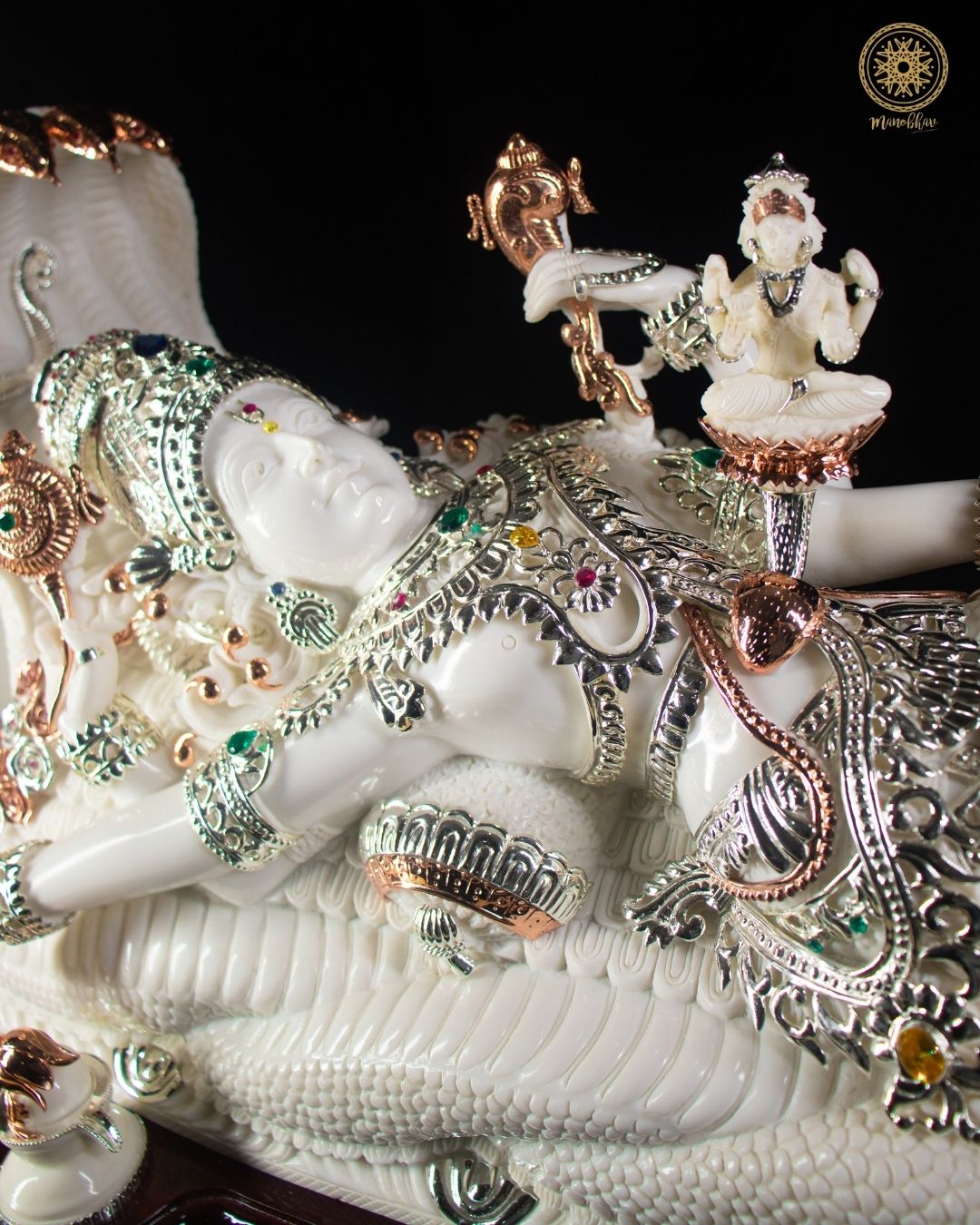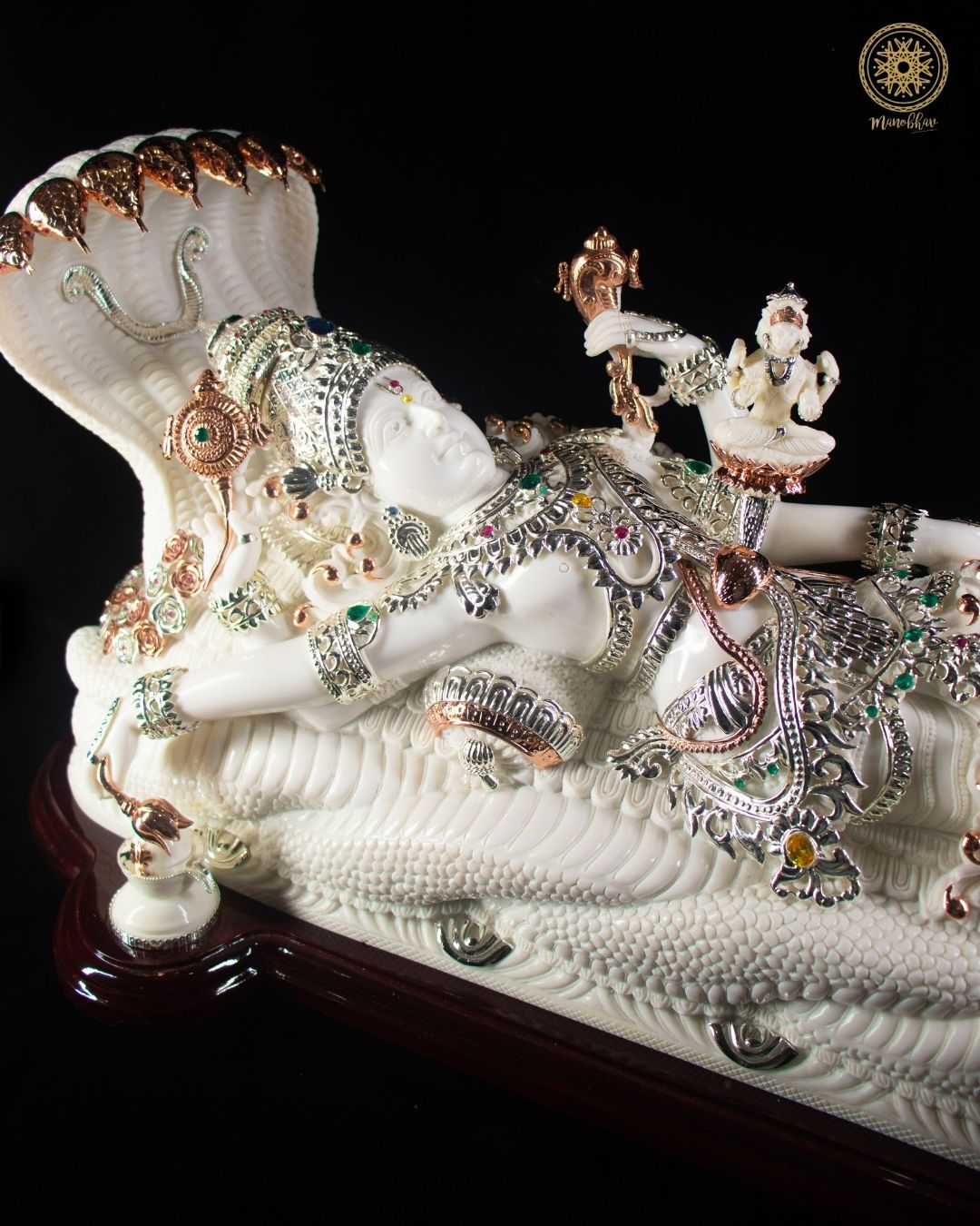 Buy Hand-Carved Vishnu Ji Sleeping Marble Dust Statue Online.