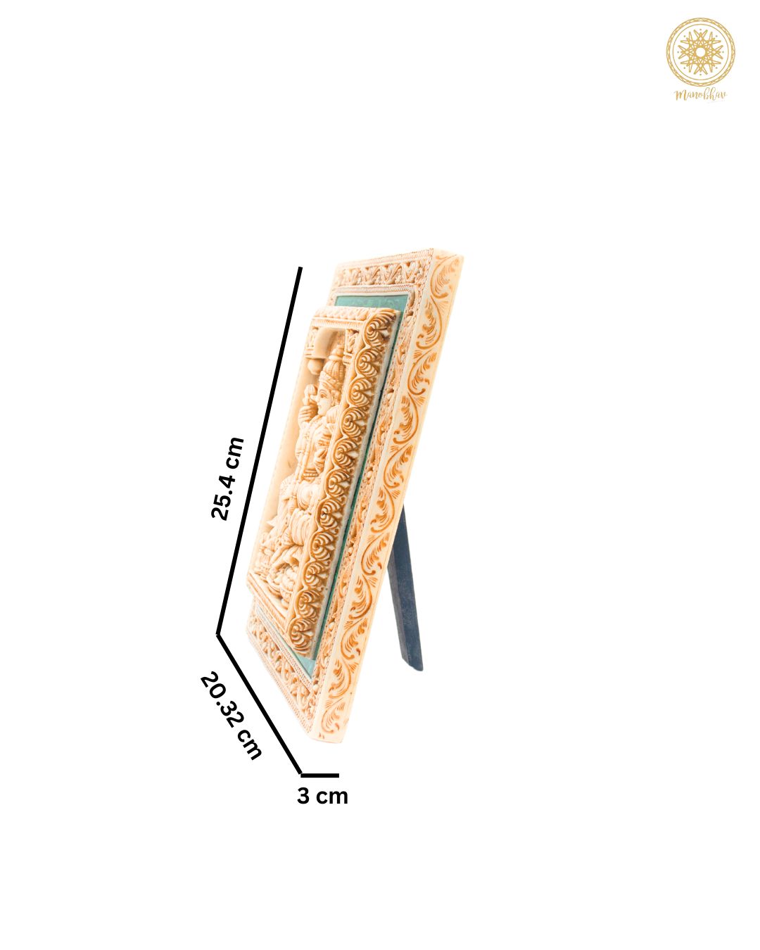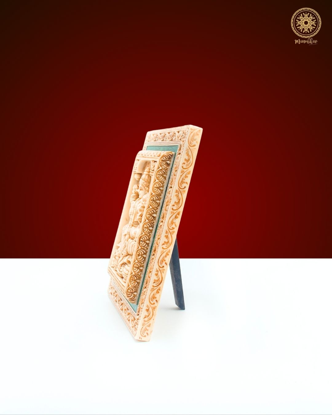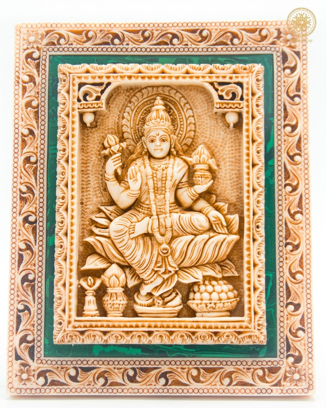 This is a rare work of art-a uniquely designed detailed Laxmi Ji wall hanging meant for the home, with super fine carvings and a malachite inlay imitating real ivory. Unique Laxmi Ji Wall Hanging for Pooja Room, this piece of unique Laxmi Ji wall hanging meant for a pooja room speaks elegance and cultural heritage in any setting.