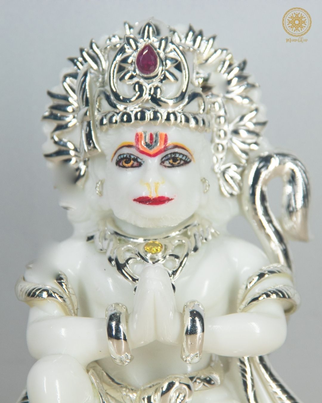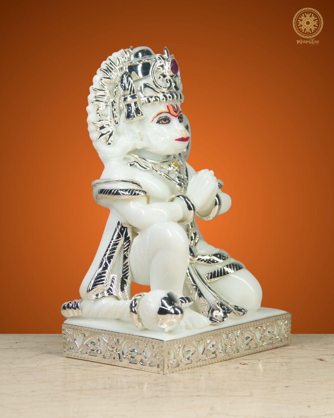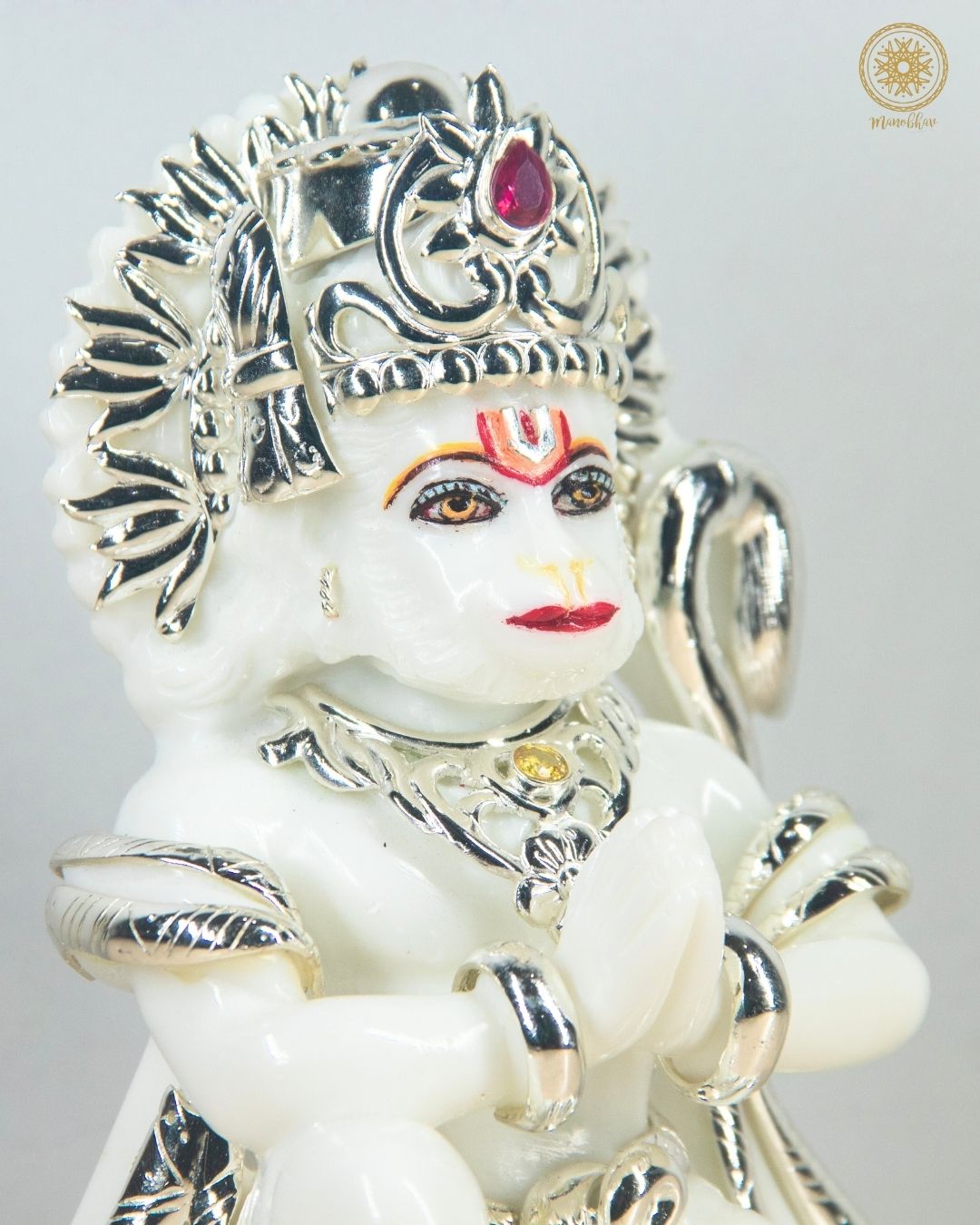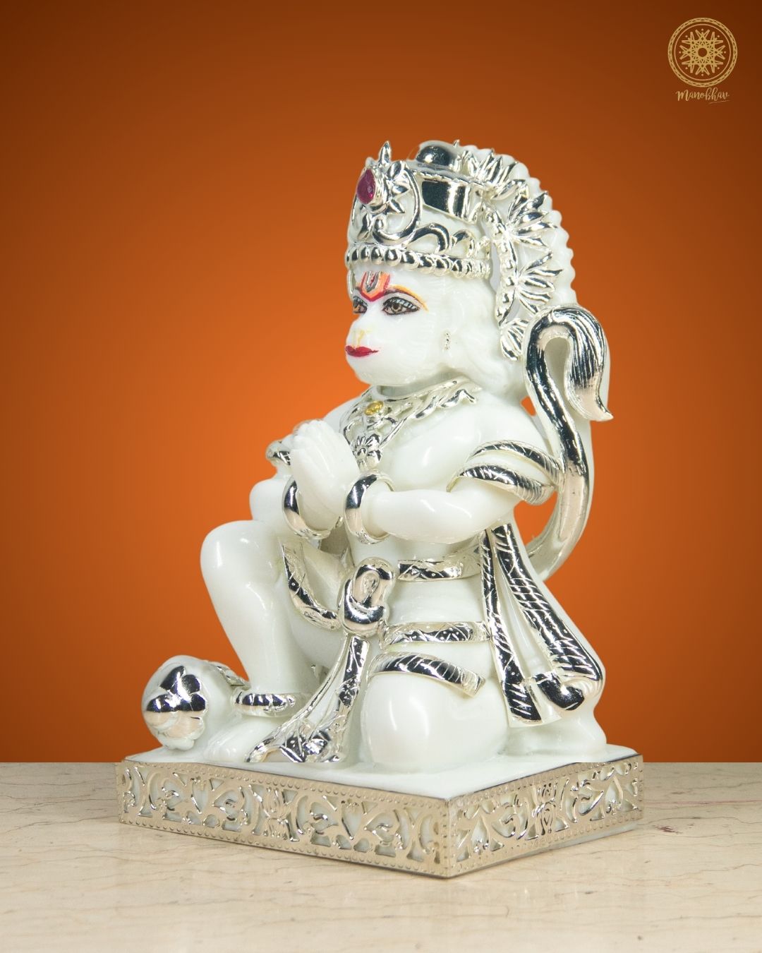 Enhance your space with the divinity of Hanuman Ji through this beautiful home decor – Hanuman Statue . This is a high-quality marble made statue which shows strength, loyalty, and protective power and is long lasting. The most intricate hand-painted work is depicted here of Lord Hanuman sitting with grace and power.