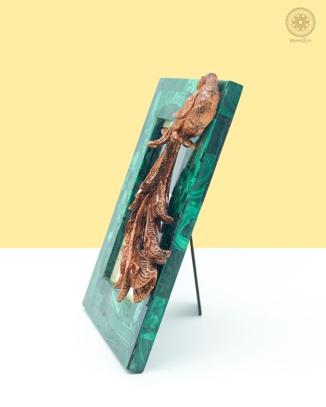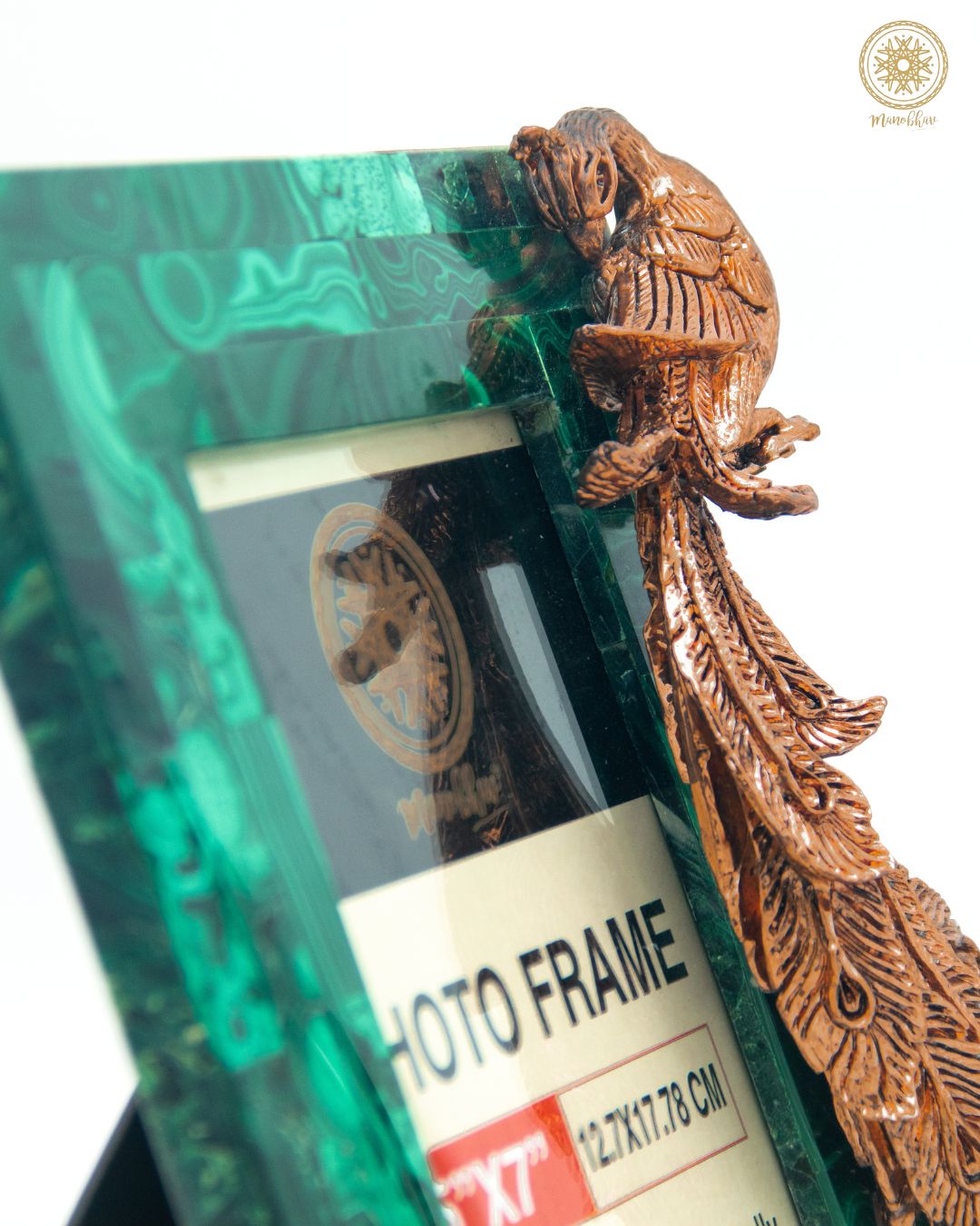 Natural Malachite Photo Frame | Embellished with Rose Gold Peacock