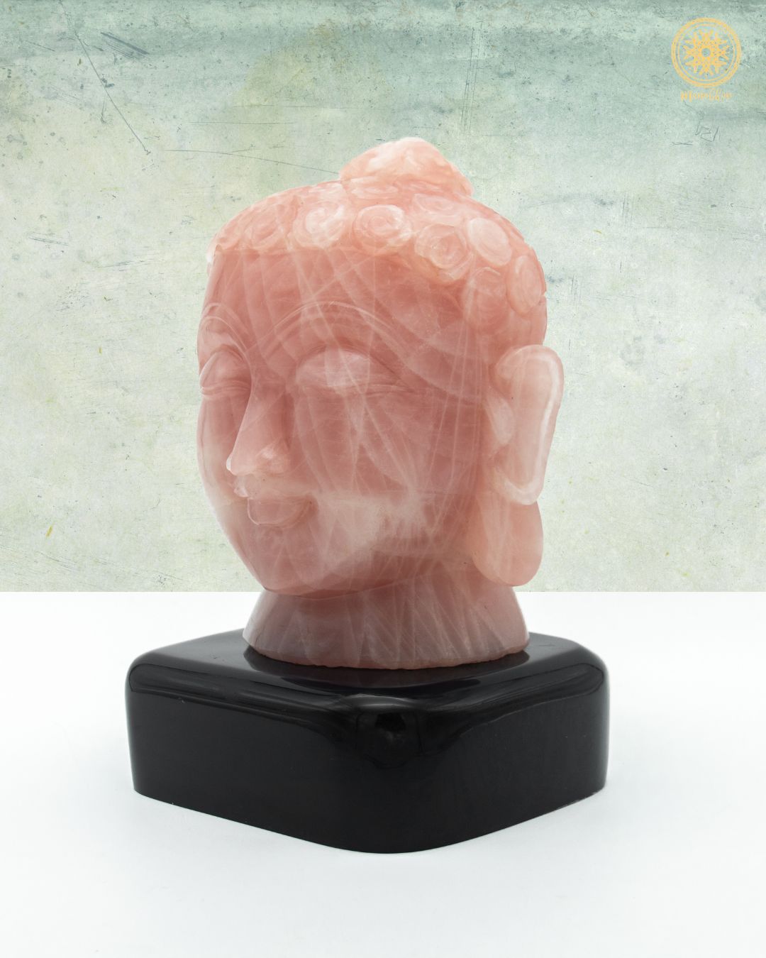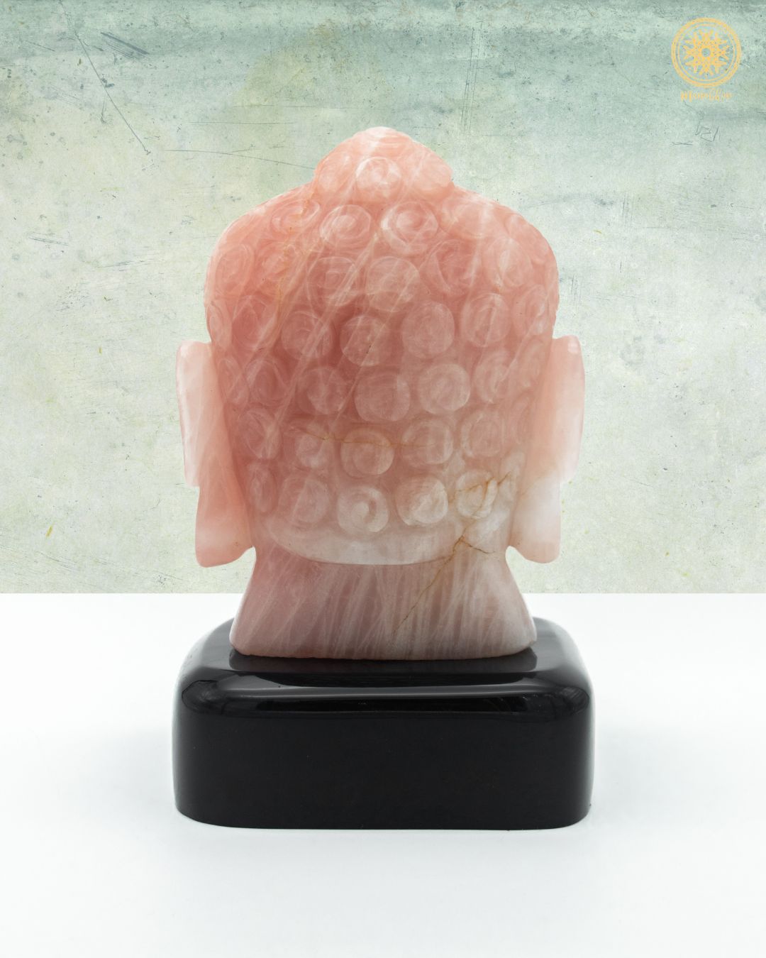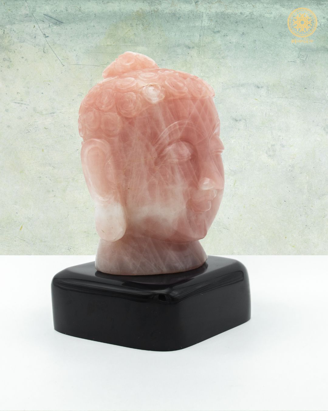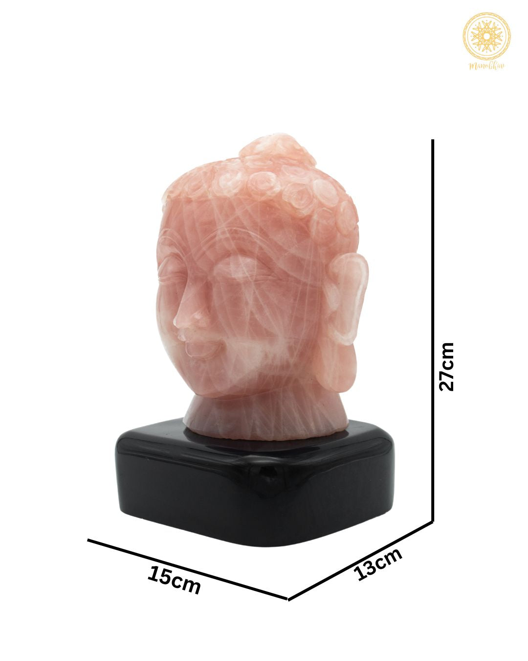 Natural Rose Quartz Buddha Head Statue | Handcrafted Gemstone Tabletop