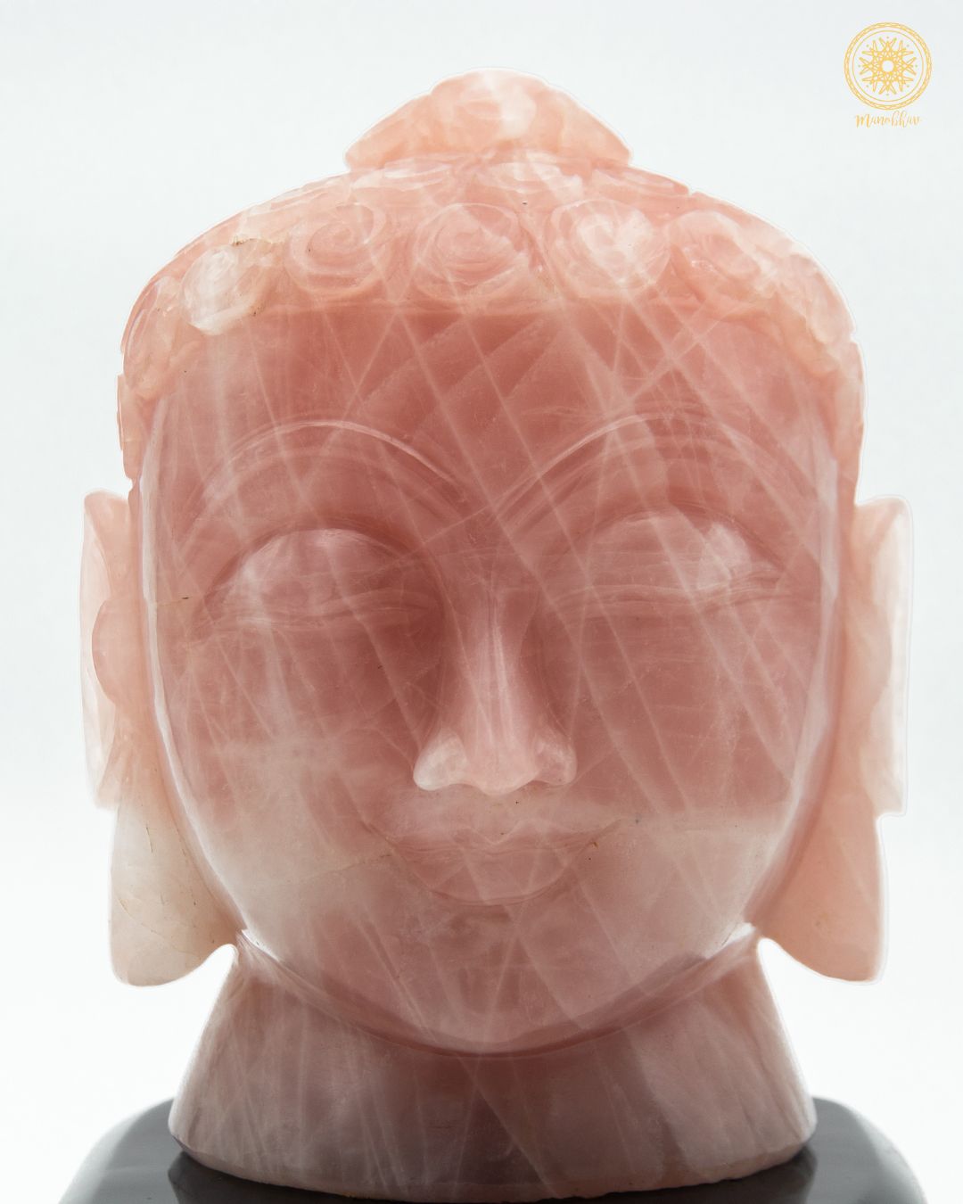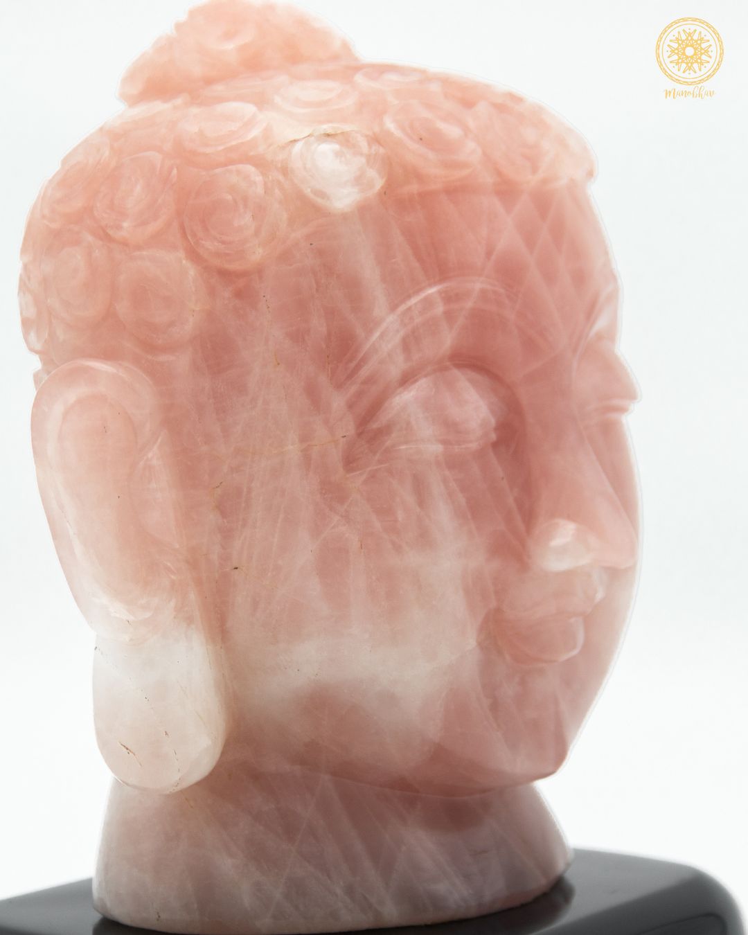 Natural Rose Quartz Buddha Head Statue | Handcrafted Gemstone Tabletop.